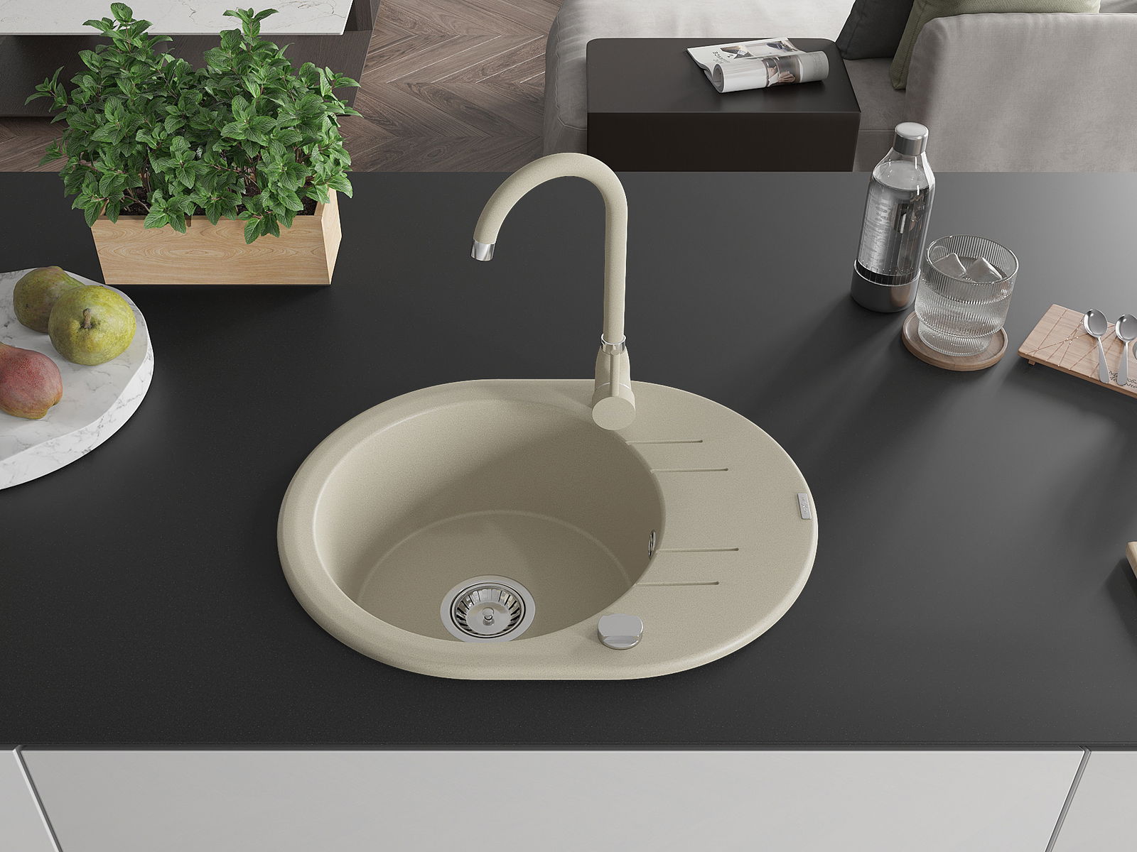 A mosogató kiváló minőségű gránitból készül. Ez egy elegáns és mindenekelőtt minden konyhához praktikus kiegészítés, stílusától függetlenül. A kiváló minőségű és a gránit tartósság biztosítja a sok éves használatát.