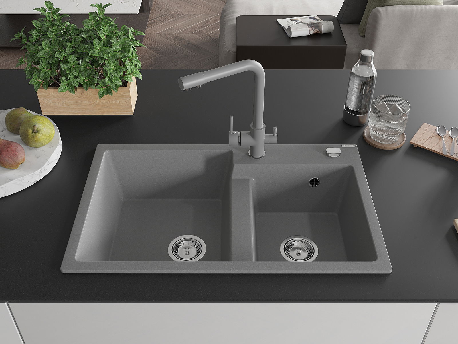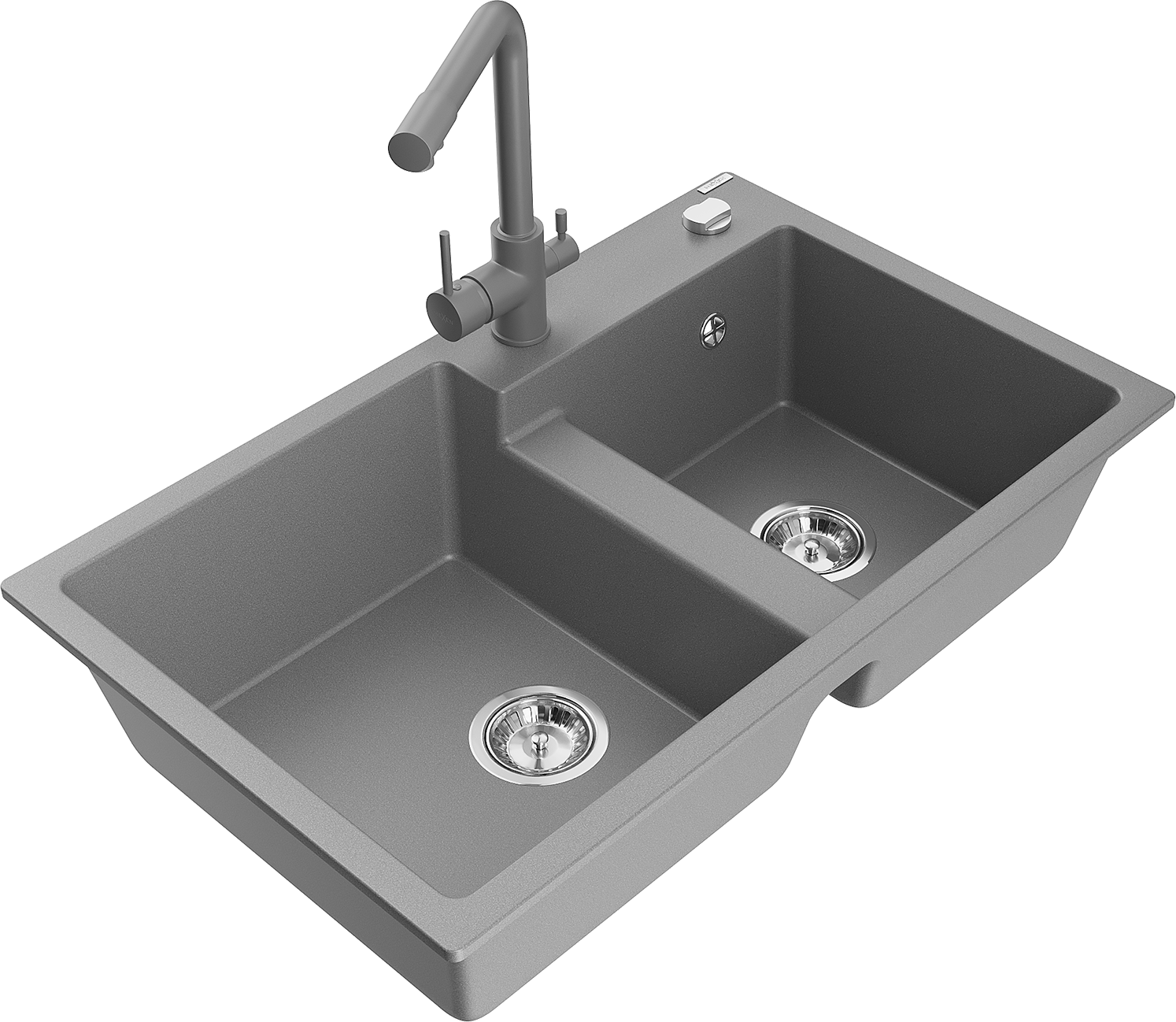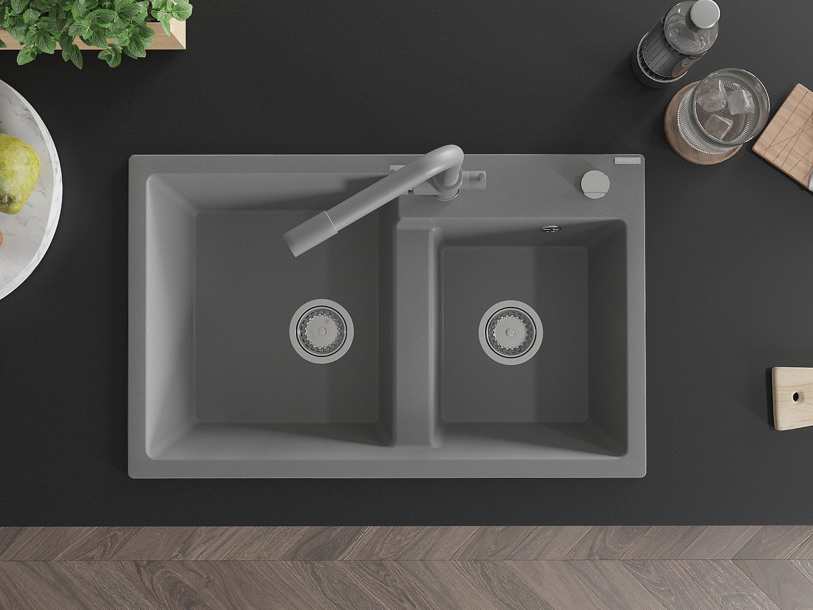 Mexen Tomas gránit mosogató kéttálcás konyhai csapteleppel Duero, szürke - 6516-71-671600-71