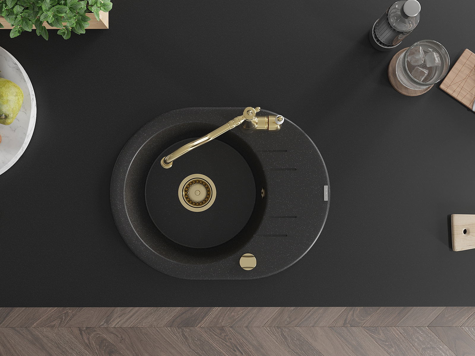 Mexen Kevin gránit 1-medencés mosogató csepegtetővel és Carla konyhai csapteleppel, fekete/ezüst metál - 6517-73-670700-50