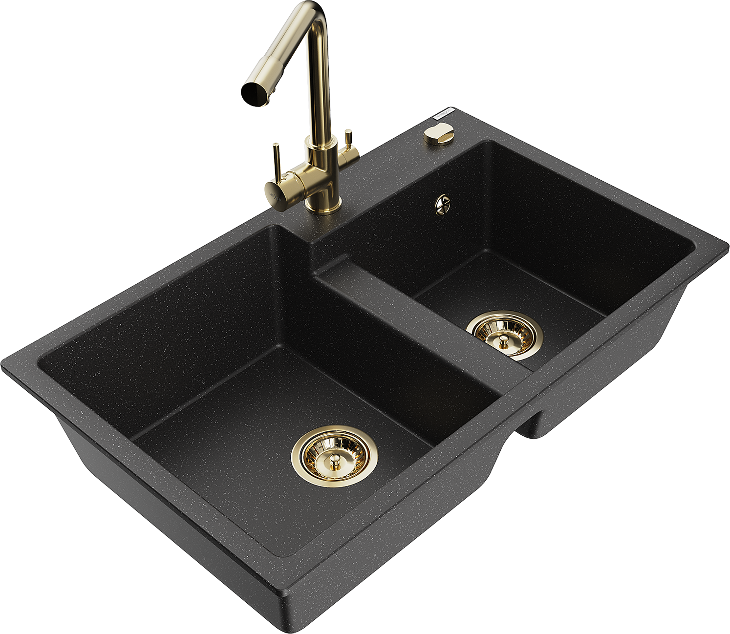 Mexen Tomas 2 rekeszes gránit mosogató Duero konyhai csappal, fekete/ezüst metál - 6516-73-671600-50