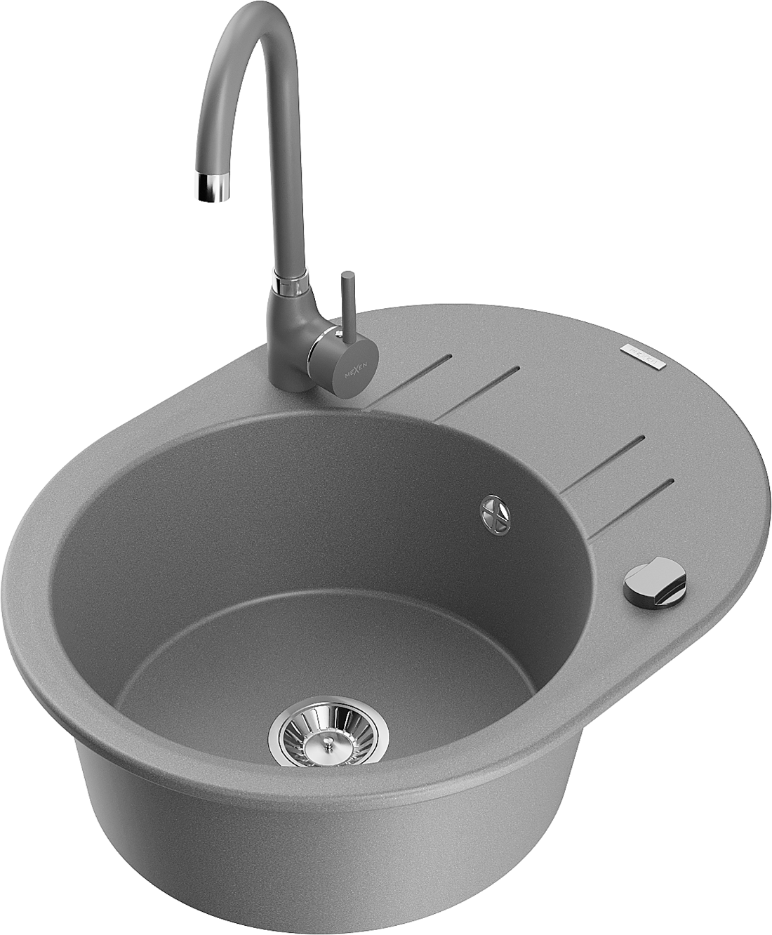 Mexen Kevin egymedencés gránit mosogató csepegtetővel és Telma konyhai csappal, szürke - 6517-71-670200-71