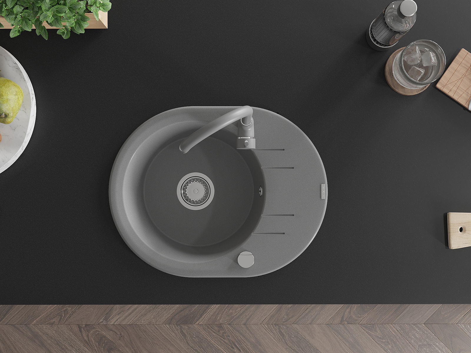 A mosogató kiváló minőségű gránitból készül. Ez egy elegáns és mindenekelőtt minden konyhához praktikus kiegészítés, stílusától függetlenül. A kiváló minőségű és a gránit tartósság biztosítja a sok éves használatát.