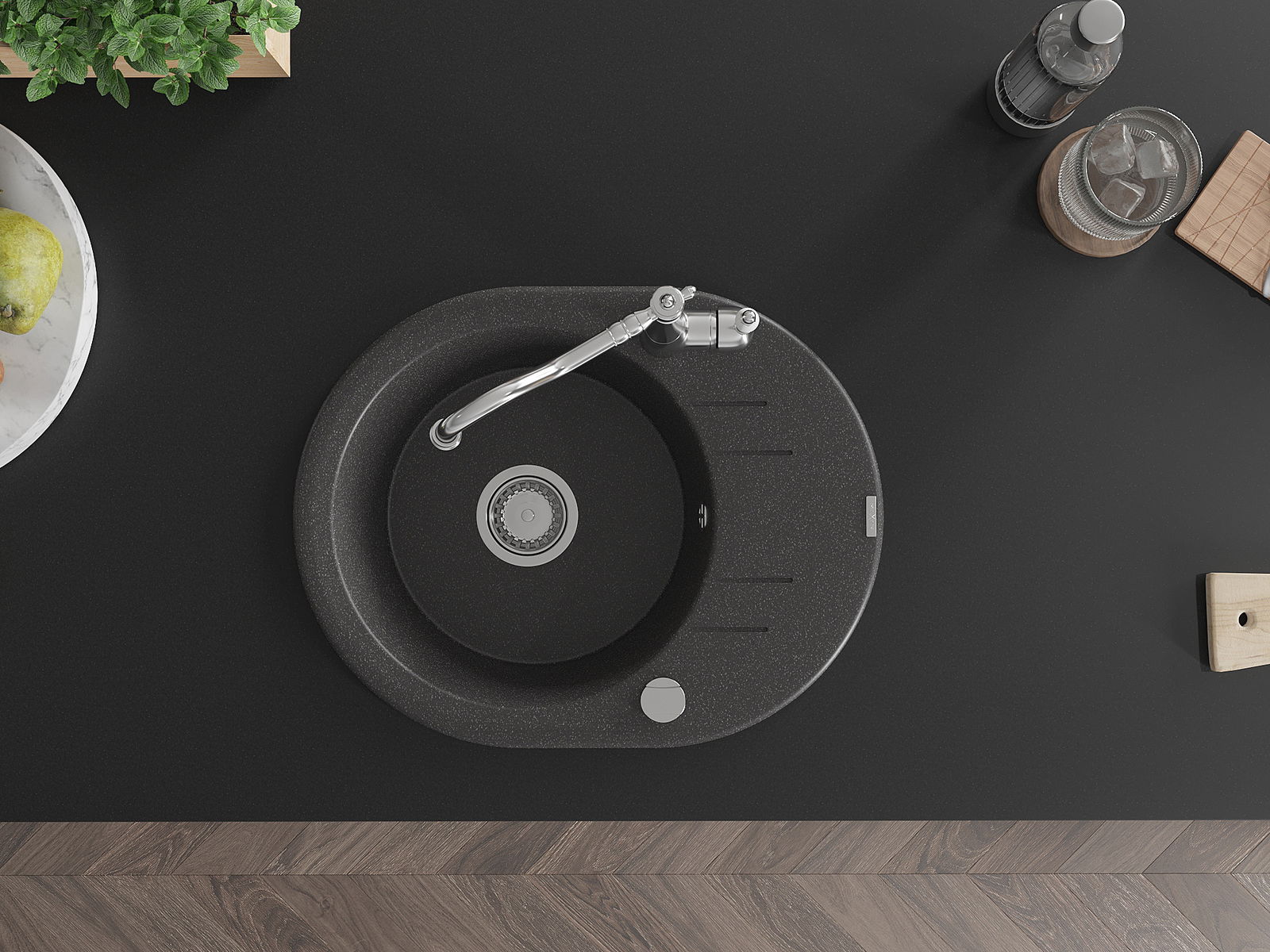 A mosogató kiváló minőségű gránitból készül. Ez egy elegáns és mindenekelőtt minden konyhához praktikus kiegészítés, stílusától függetlenül. A kiváló minőségű és a gránit tartósság biztosítja a sok éves használatát.