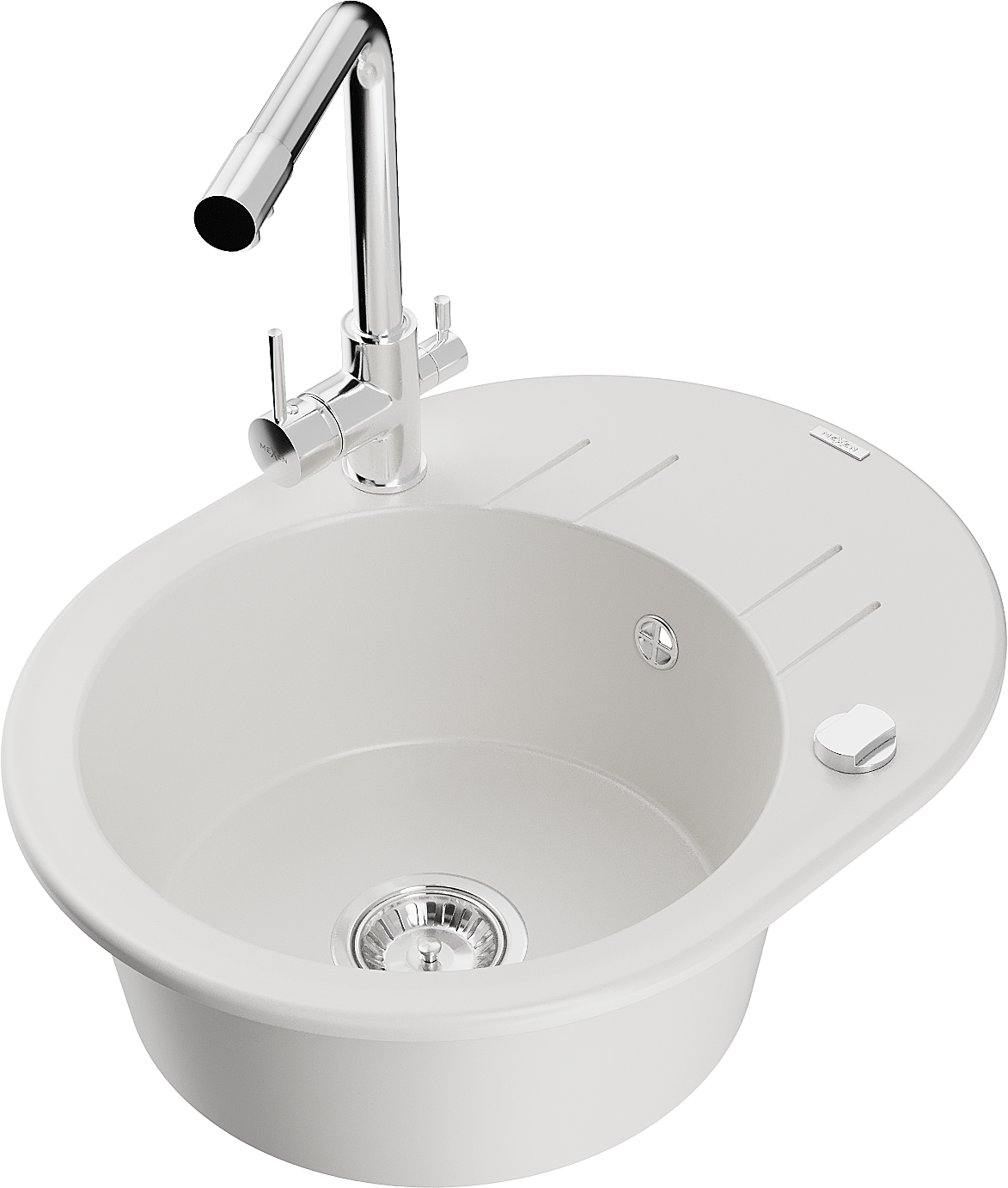 Mexen Kevin 1-medencés gránit mosogató lefolyóval és Duero konyhai csapteleppel, fehér - 6517-20-671600-00