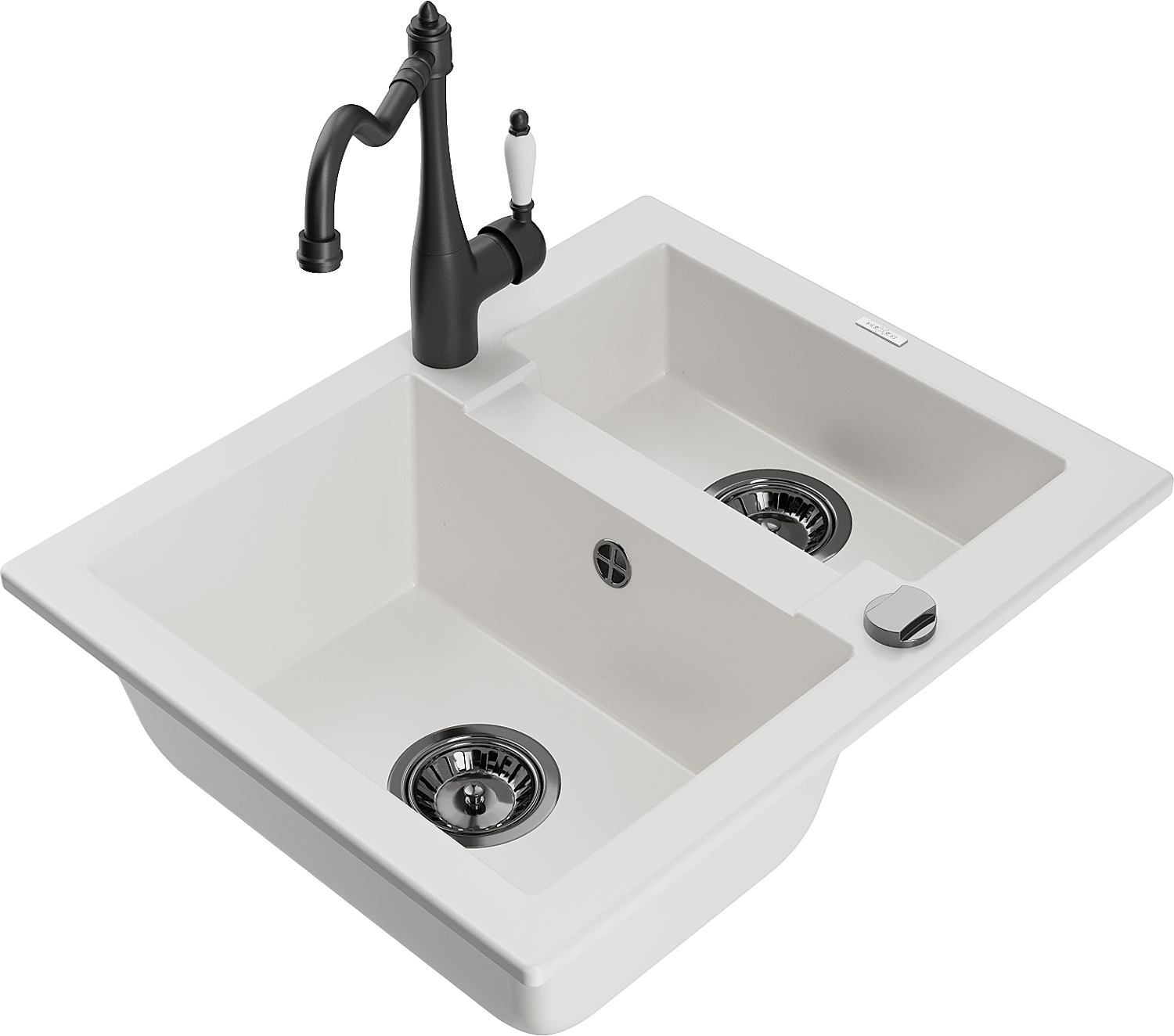 Mexen Carlos gránit mosogató 1,5 medencés konyhai csapteleppel Carla, fehér - 6518-20-670700-70