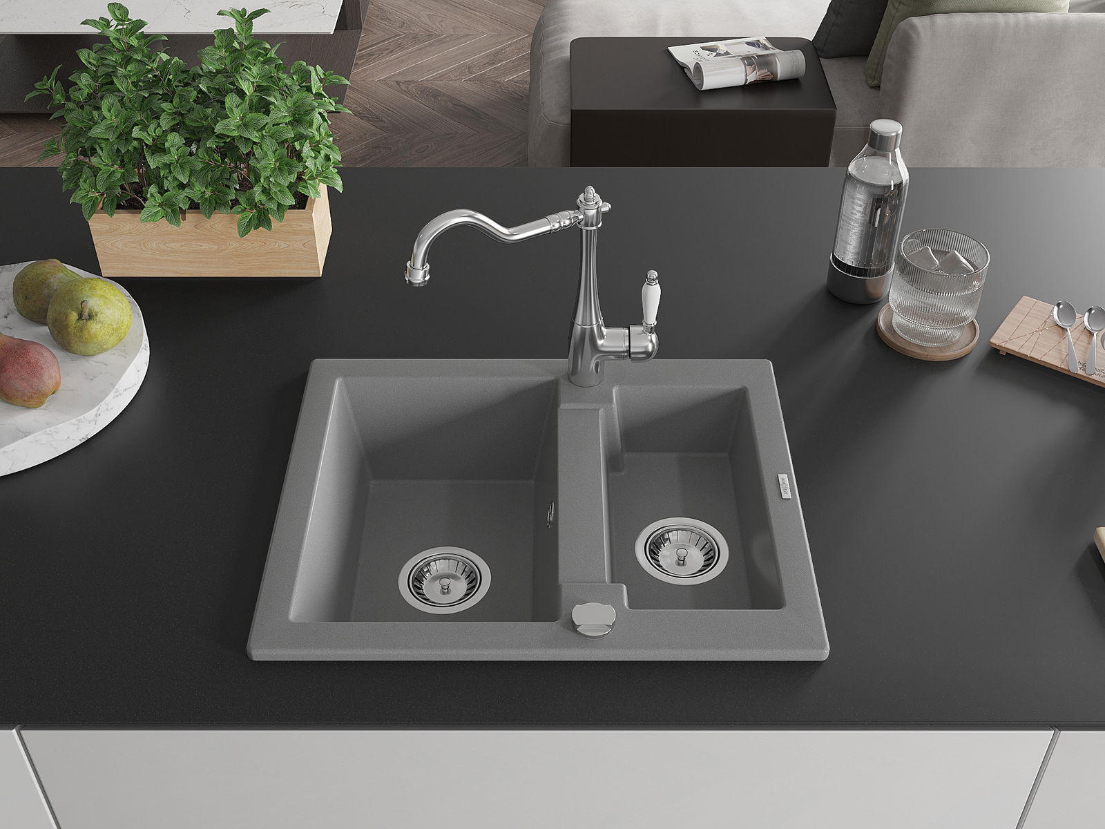 A mosogató kiváló minőségű gránitból készül. Ez egy elegáns és mindenekelőtt minden konyhához praktikus kiegészítés, stílusától függetlenül. A kiváló minőségű és a gránit tartósság biztosítja a sok éves használatát.