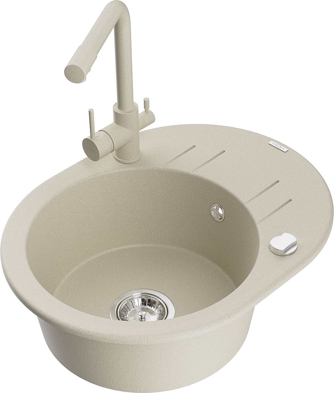 Mexen Kevin egymedencés gránit mosogató csepegtetővel és Duero konyhai csapteleppel, bézs - 6517-69-671600-69