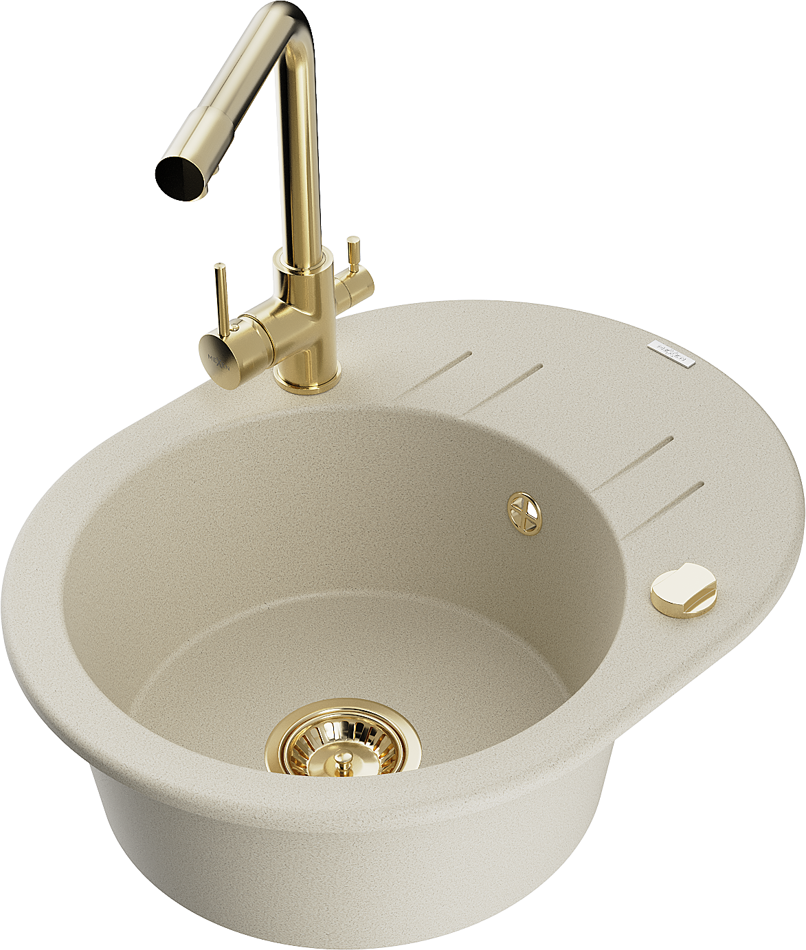 Mexen Kevin 1 rekeszes csepegtetős gránit mosogató Duero konyhai csapteleppel, bézs - 6517-69-671600-50