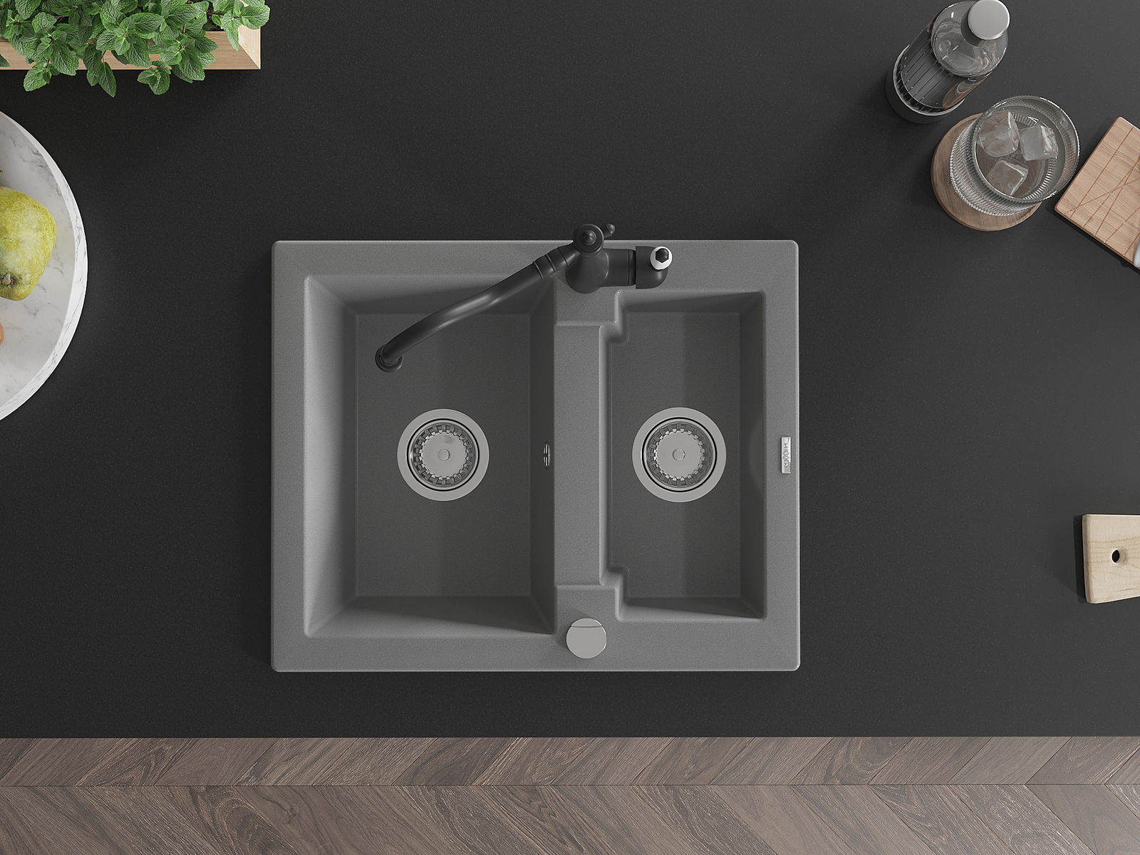 Mexen Carlos gránit mosogató 1,5 medencés Carla konyhai csapteleppel, szürke - 6518-71-670700-70