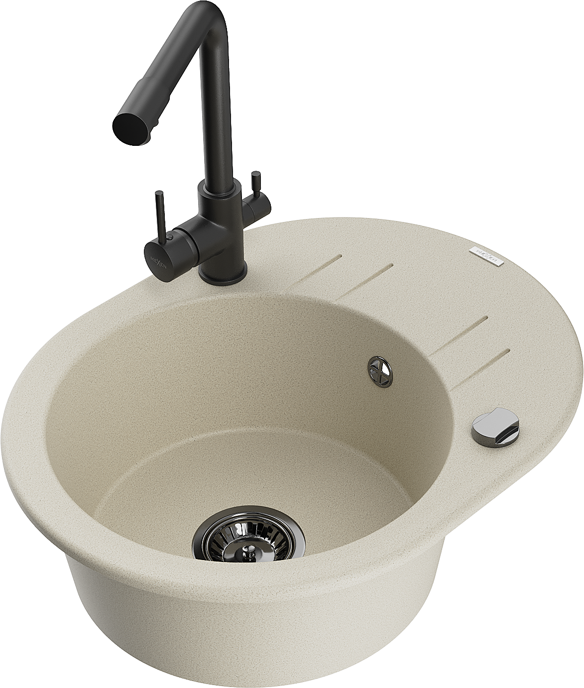 Mexen Kevin egymedencés, gránit mosogató csepegtetővel és Duero konyhai csapteleppel, bézs - 6517-69-671600-70