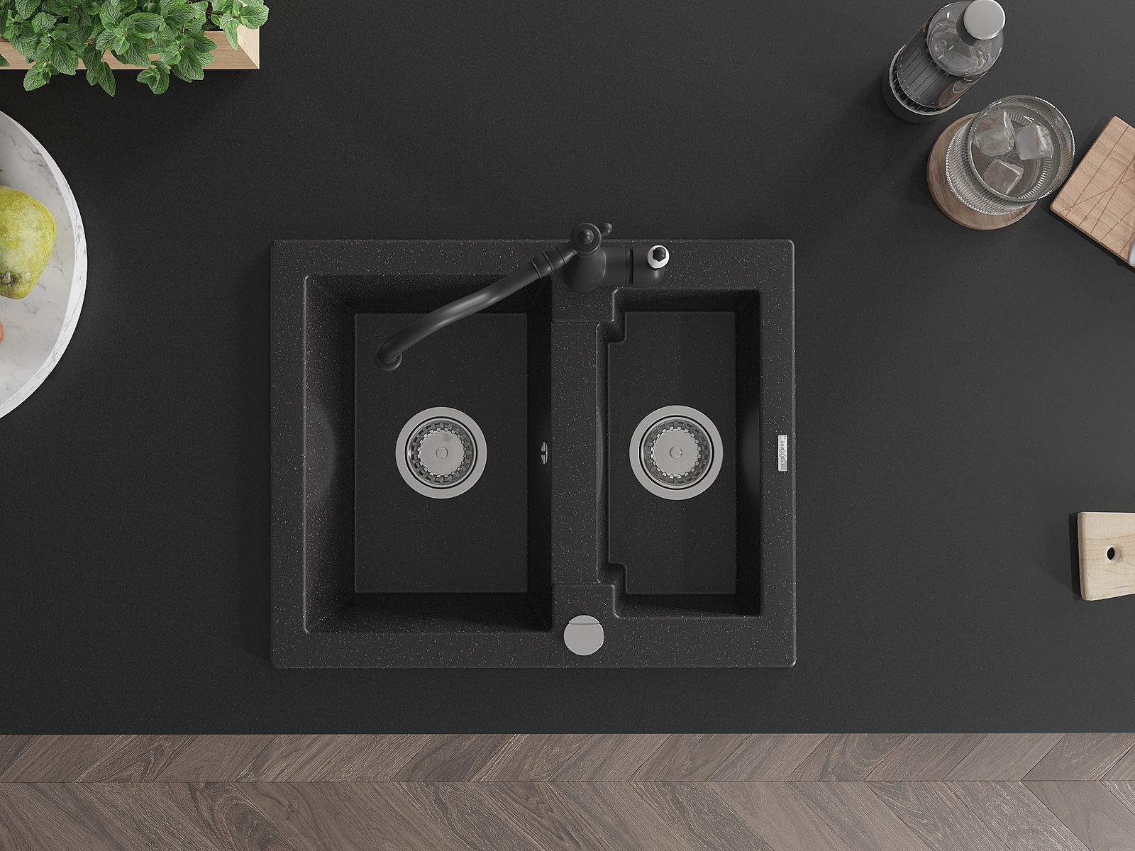 A mosogató kiváló minőségű gránitból készül. Ez egy elegáns és mindenekelőtt minden konyhához praktikus kiegészítés, stílusától függetlenül. A kiváló minőségű és a gránit tartósság biztosítja a sok éves használatát.