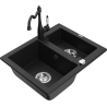 Mexen Carlos 1,5-medencés gránit mosogató Carla konyhai csappal, fekete/ezüst metál - 6518-73-670700-70