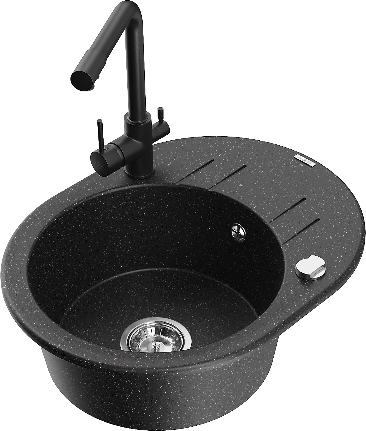 Mexen Kevin 1 rekeszes gránit mosogató csepegtetővel és Duero konyhai csapteleppel, fekete/ezüst metál - 6517-73-671600-70