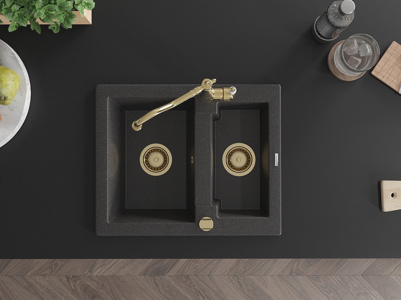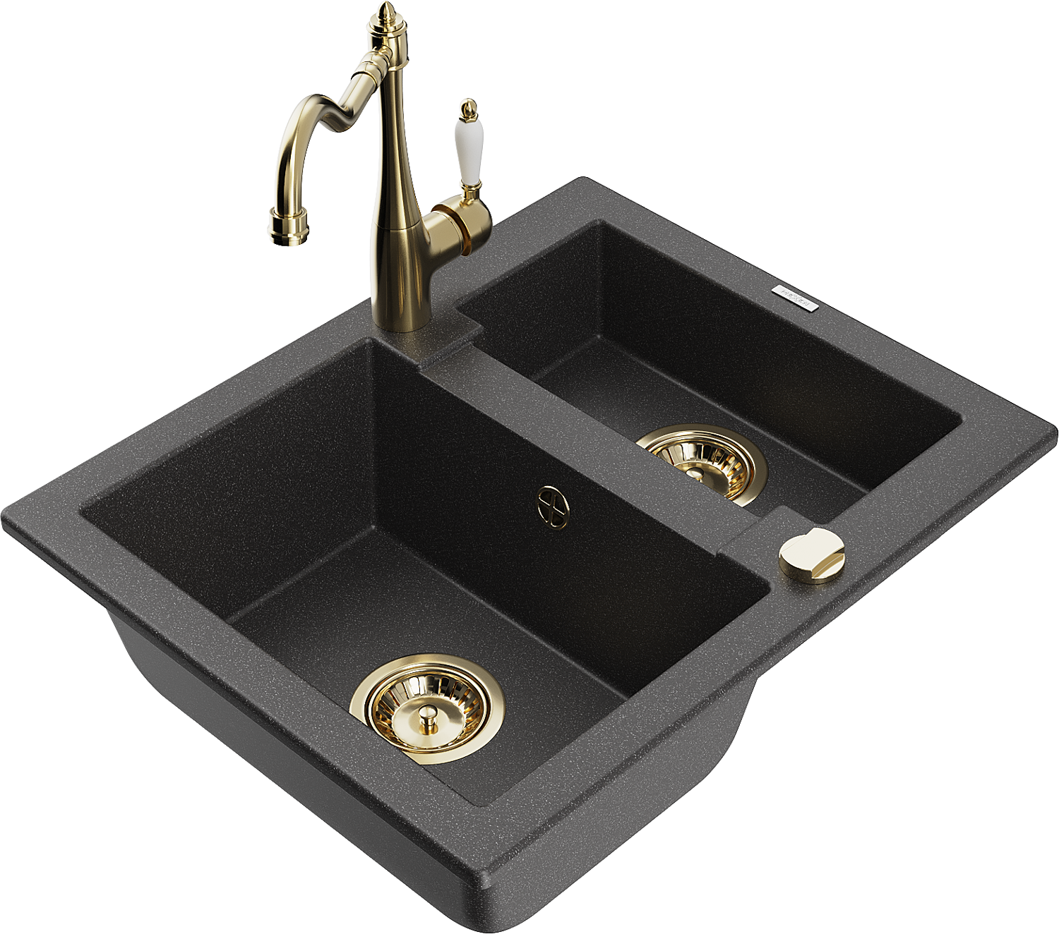 Mexen Carlos gránit mosogató 1,5 rekeszes Carla konyhai csapteleppel, fekete pöttyös - 6518-76-670700-50