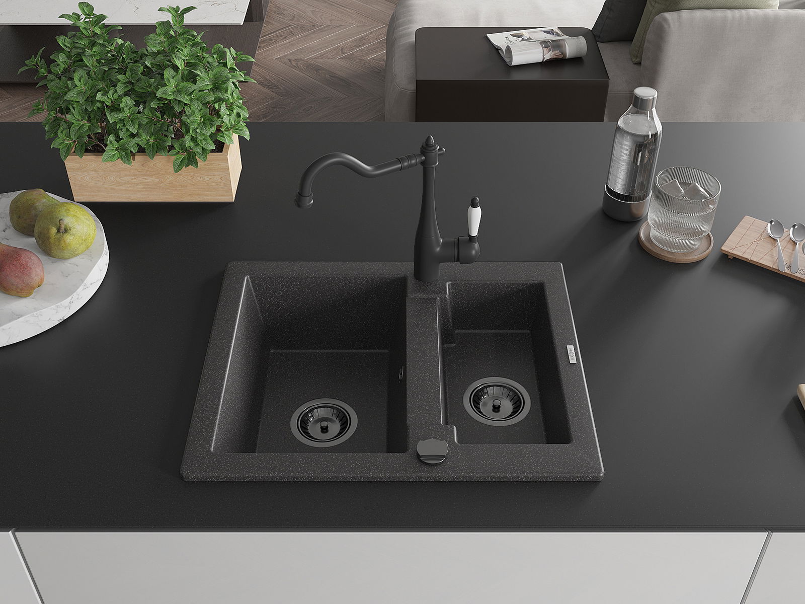A mosogató kiváló minőségű gránitból készül. Ez egy elegáns és mindenekelőtt minden konyhához praktikus kiegészítés, stílusától függetlenül. A kiváló minőségű és a gránit tartósság biztosítja a sok éves használatát.