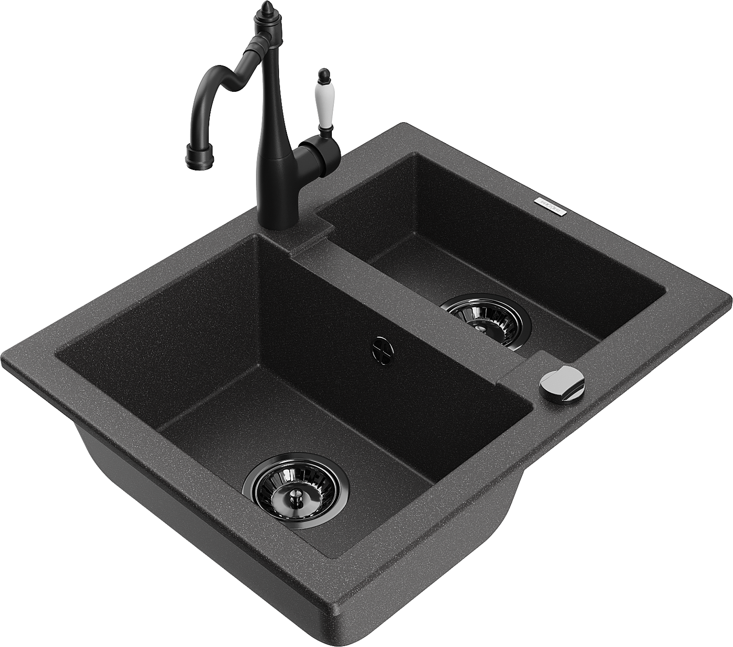 Mexen Carlos 1,5-medencés gránit mosogató Carla konyhai csappal, fekete pöttyös - 6518-76-670700-70-B