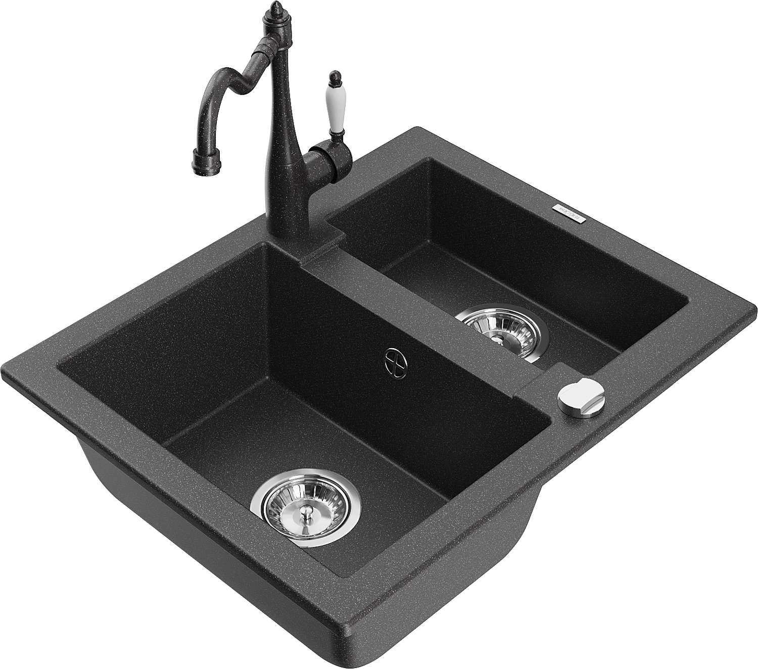 Mexen Carlos gránit mosogatótál 1,5 rekeszes Carla konyhai csappal, fekete pöttyös - 6518-76-670700-76