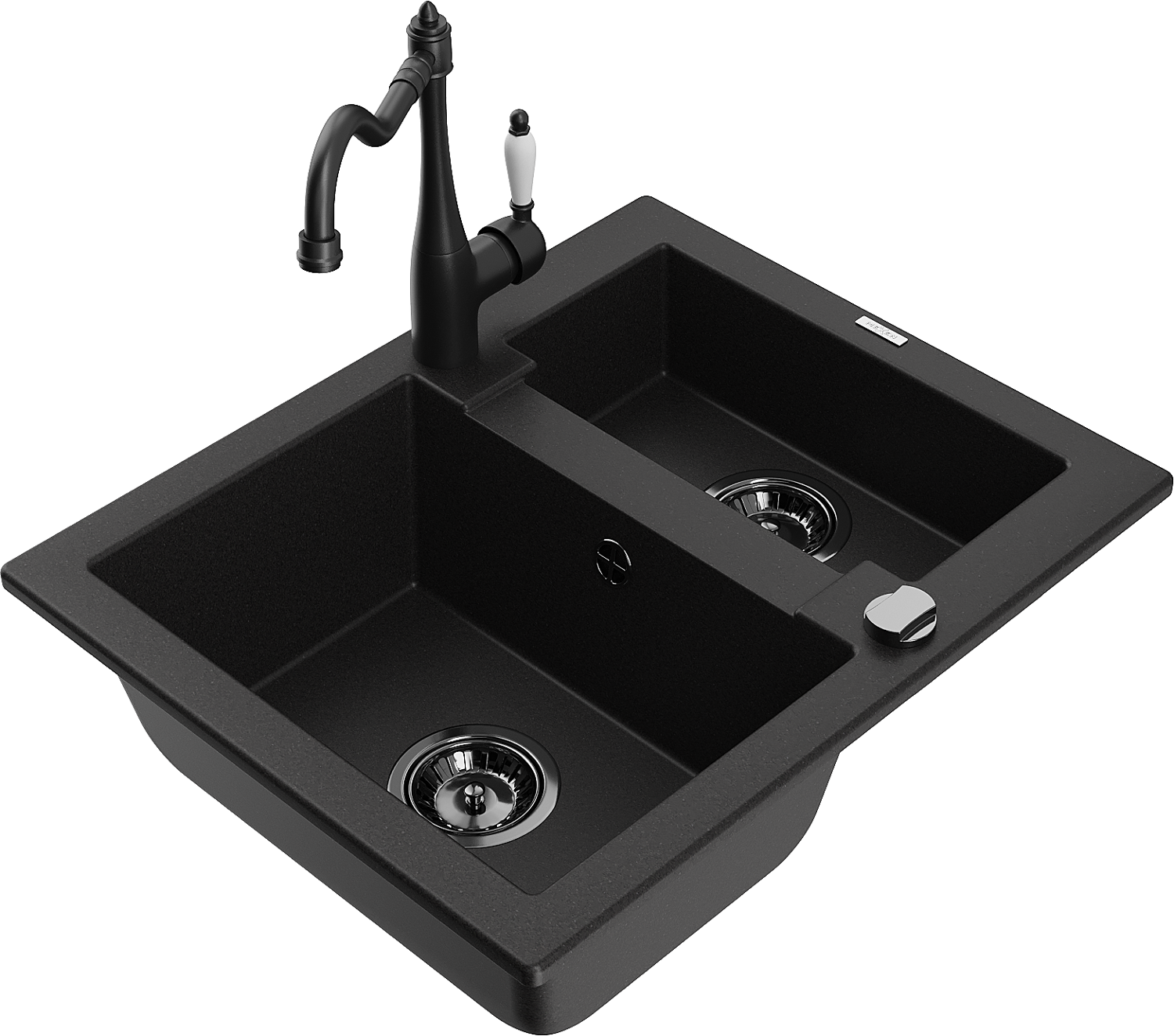 Mexen Carlos gránit mosogató 1,5 medencés Carla konyhai csappal, fekete - 6518-77-670700-70-B