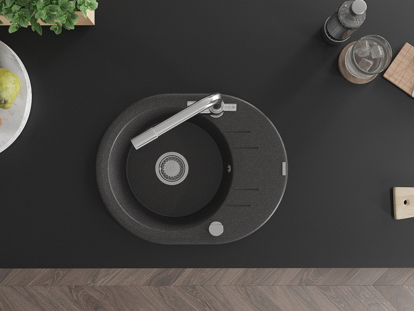A mosogató kiváló minőségű gránitból készül. Ez egy elegáns és mindenekelőtt minden konyhához praktikus kiegészítés, stílusától függetlenül. A kiváló minőségű és a gránit tartósság biztosítja a sok éves használatát.