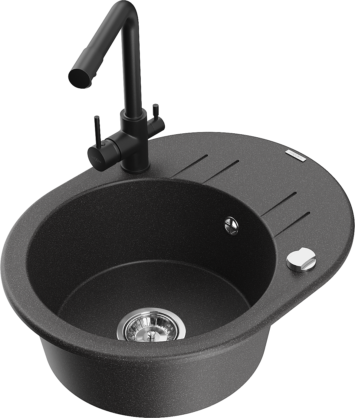 Mexen Kevin 1-medencés gránit mosogató csepegtetővel és Duero konyhai csappal, fekete pöttyös - 6517-76-671600-70