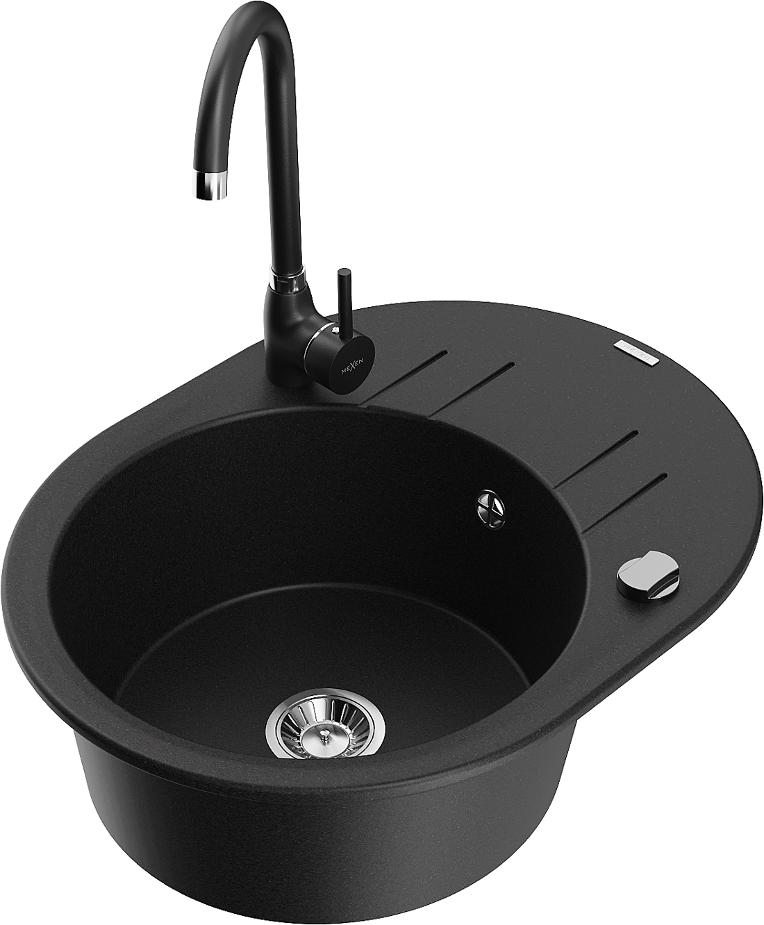 Mexen Kevin 1 rekeszes, csepegtetős gránit mosogató és Telma konyhai csaptelep, fekete - 6517-77-670200-70