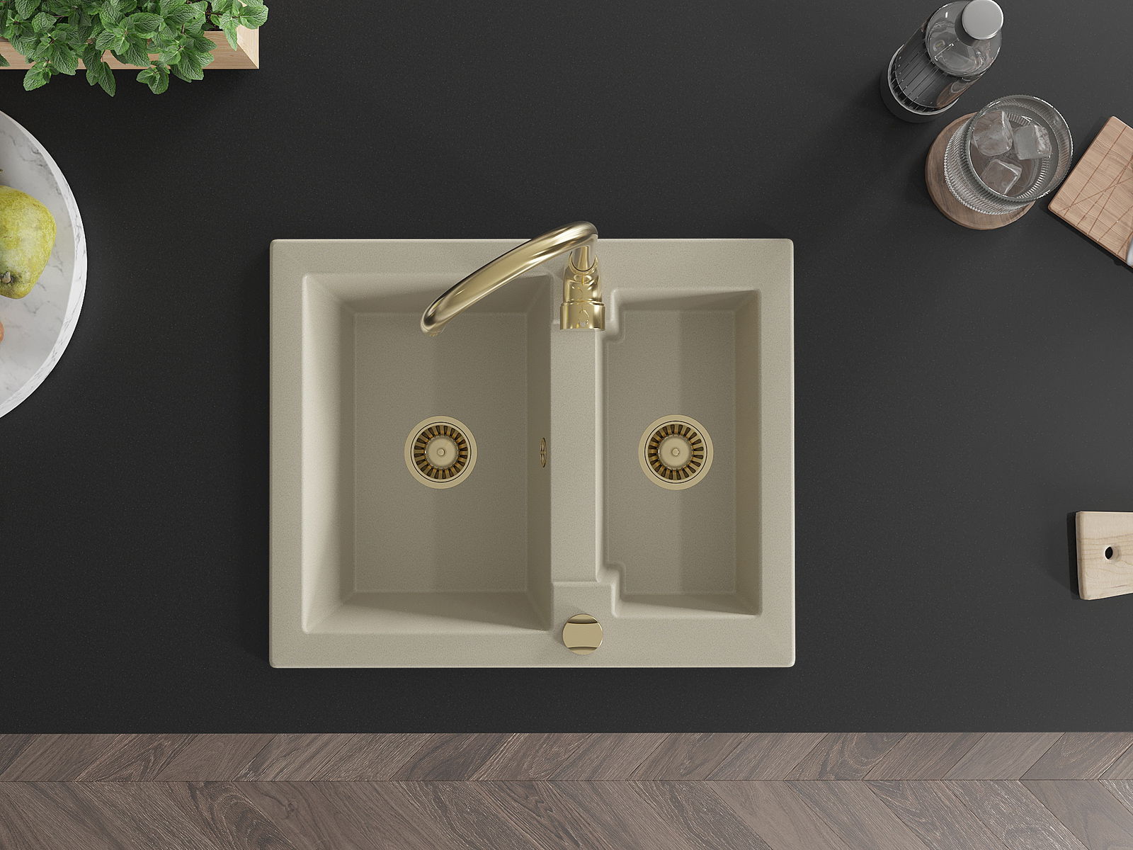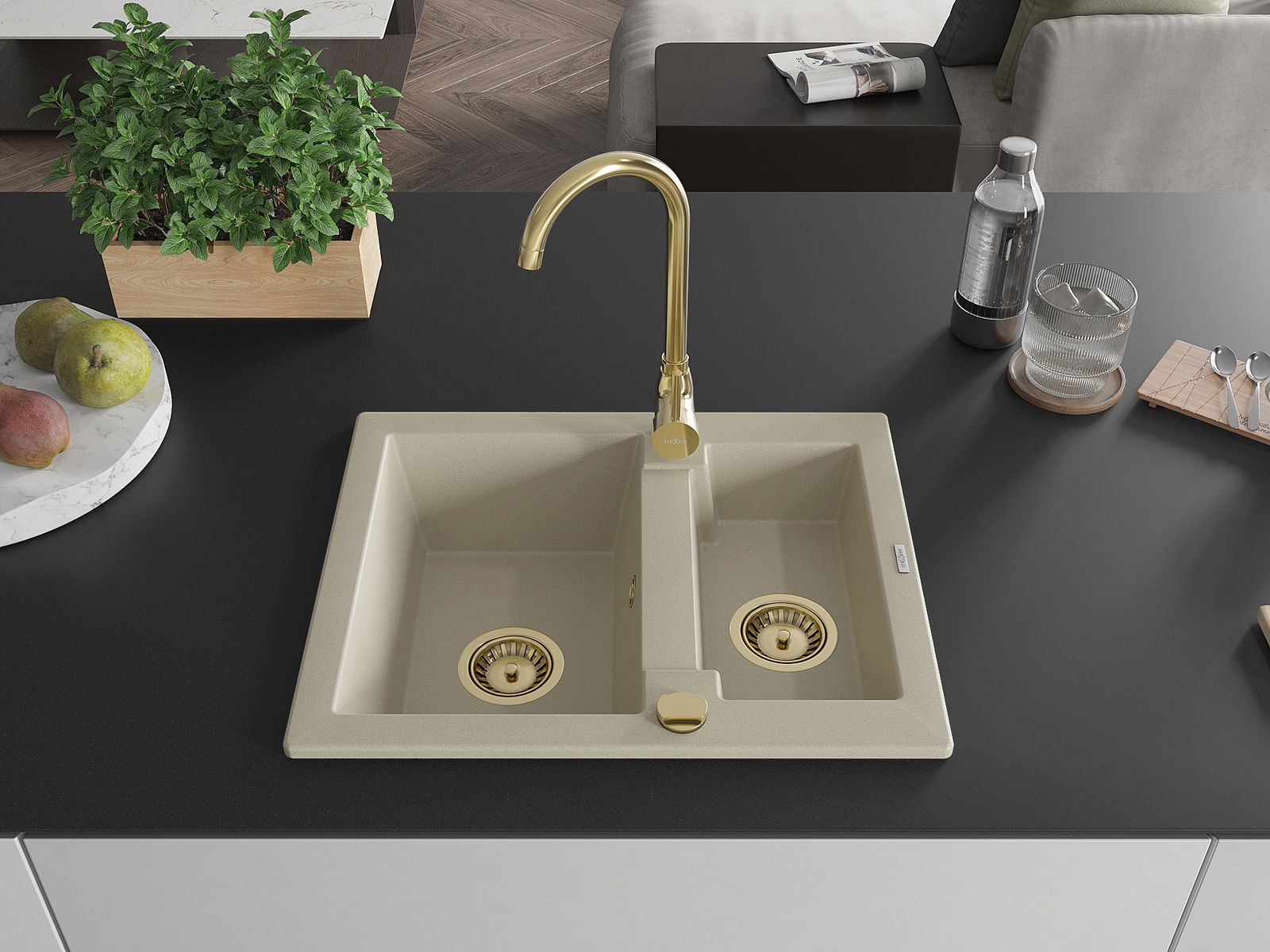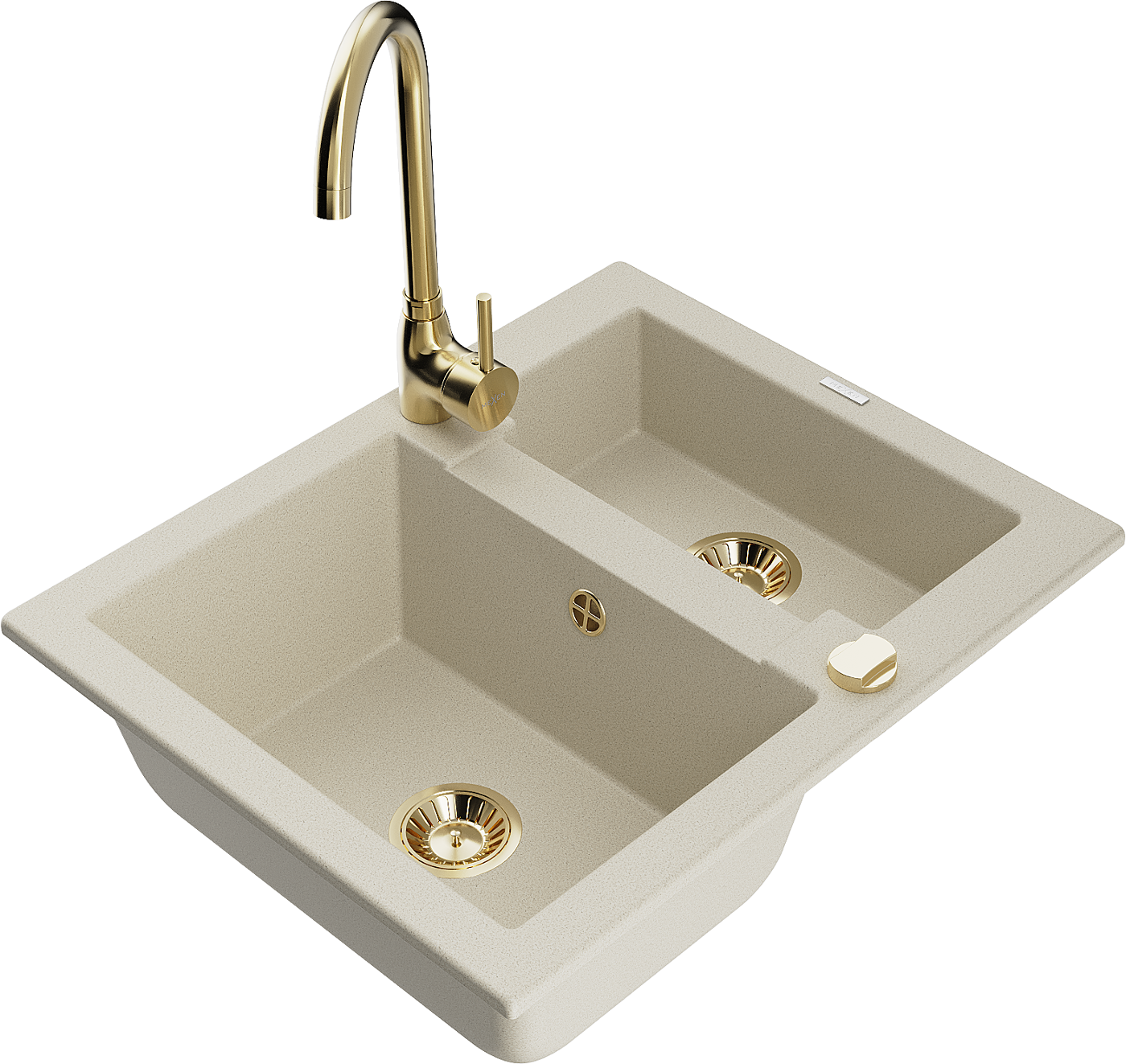 Mexen Carlos 1,5 kamrás gránit mosogató Telma konyhai csapteleppel, bézs - 6518-69-670200-50