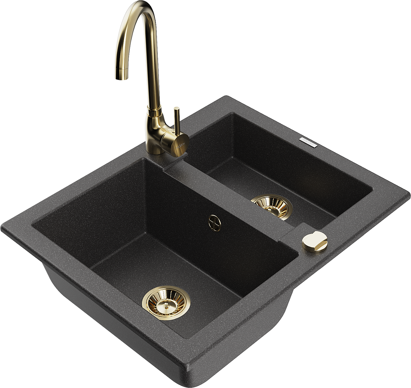 Mexen Carlos 1,5-medencés gránit mosogató Telma konyhai csapteleppel, fekete pöttyös - 6518-76-670200-50