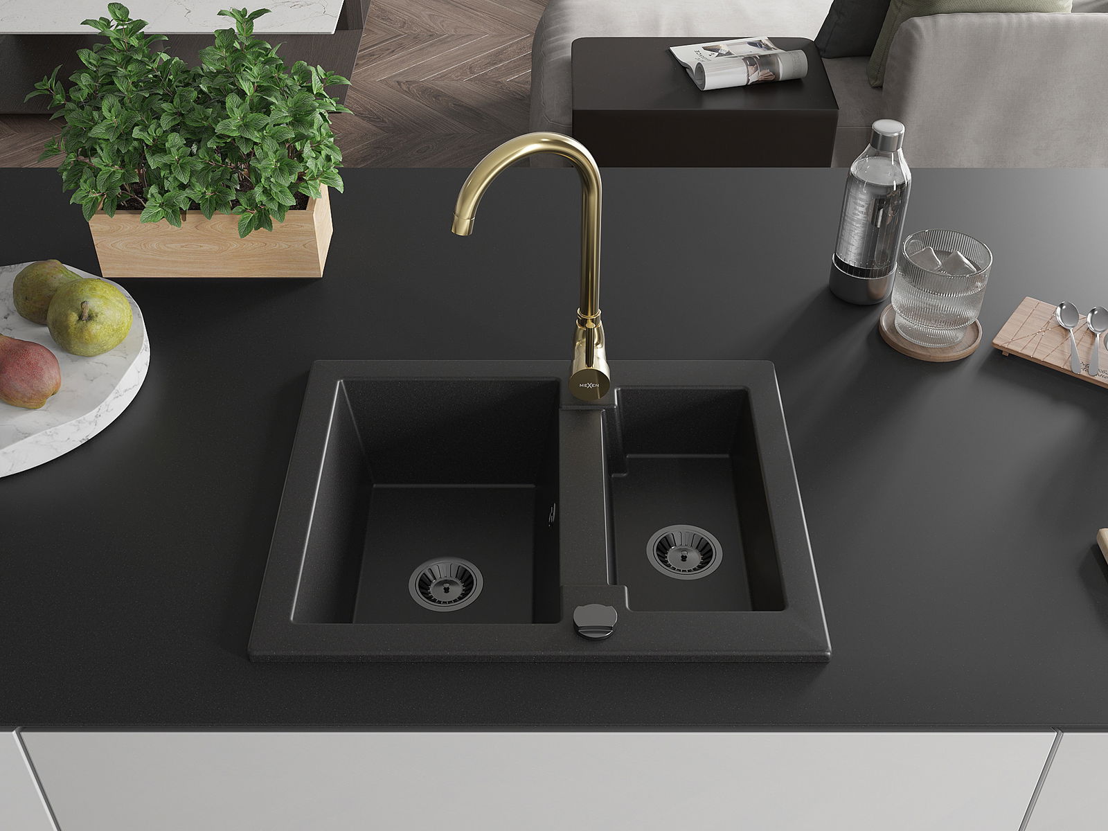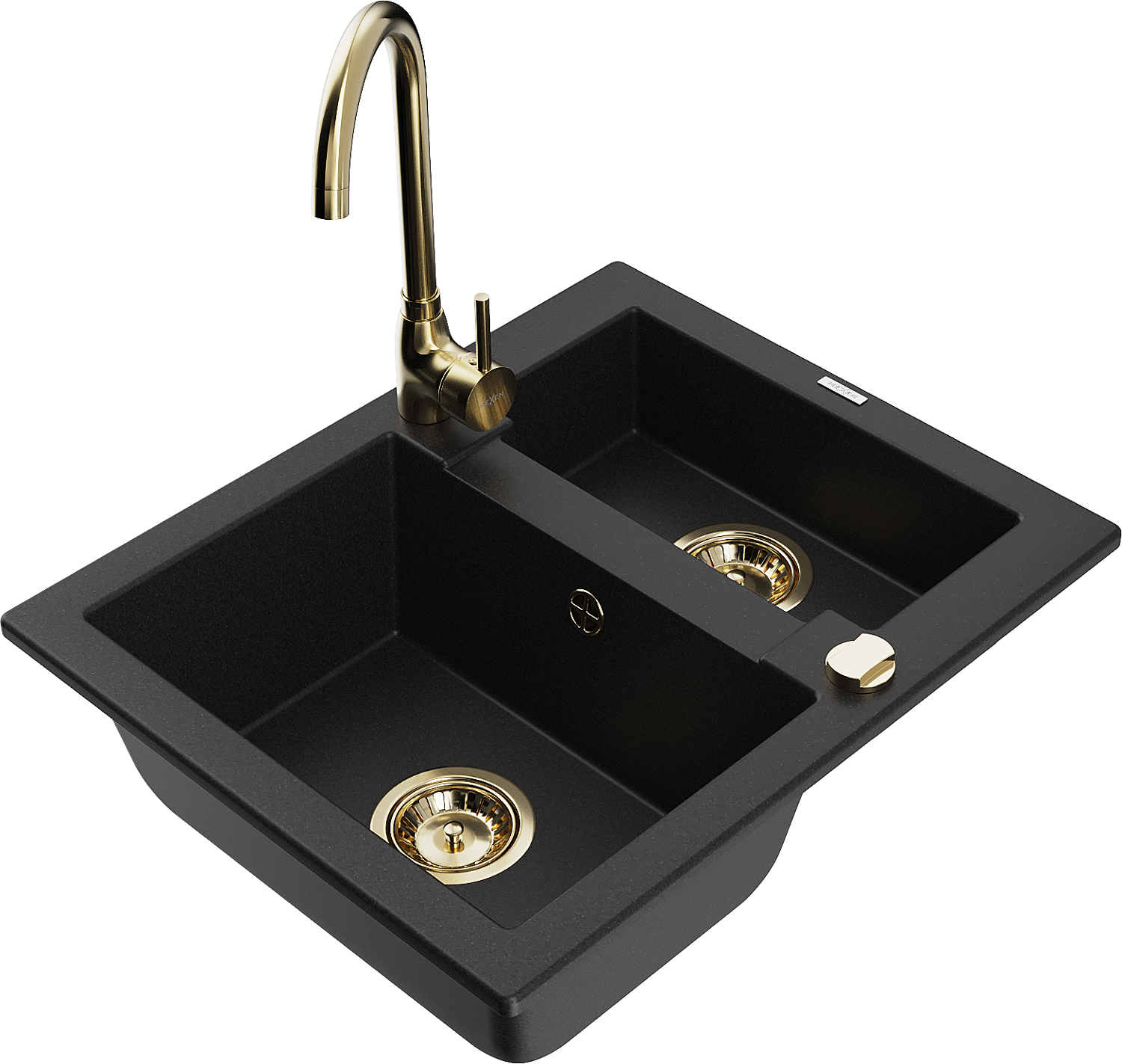 Mexen Carlos gránit mosogatótálca 1,5 medencés, Telma konyhai csappal, fekete - 6518-77-670200-50