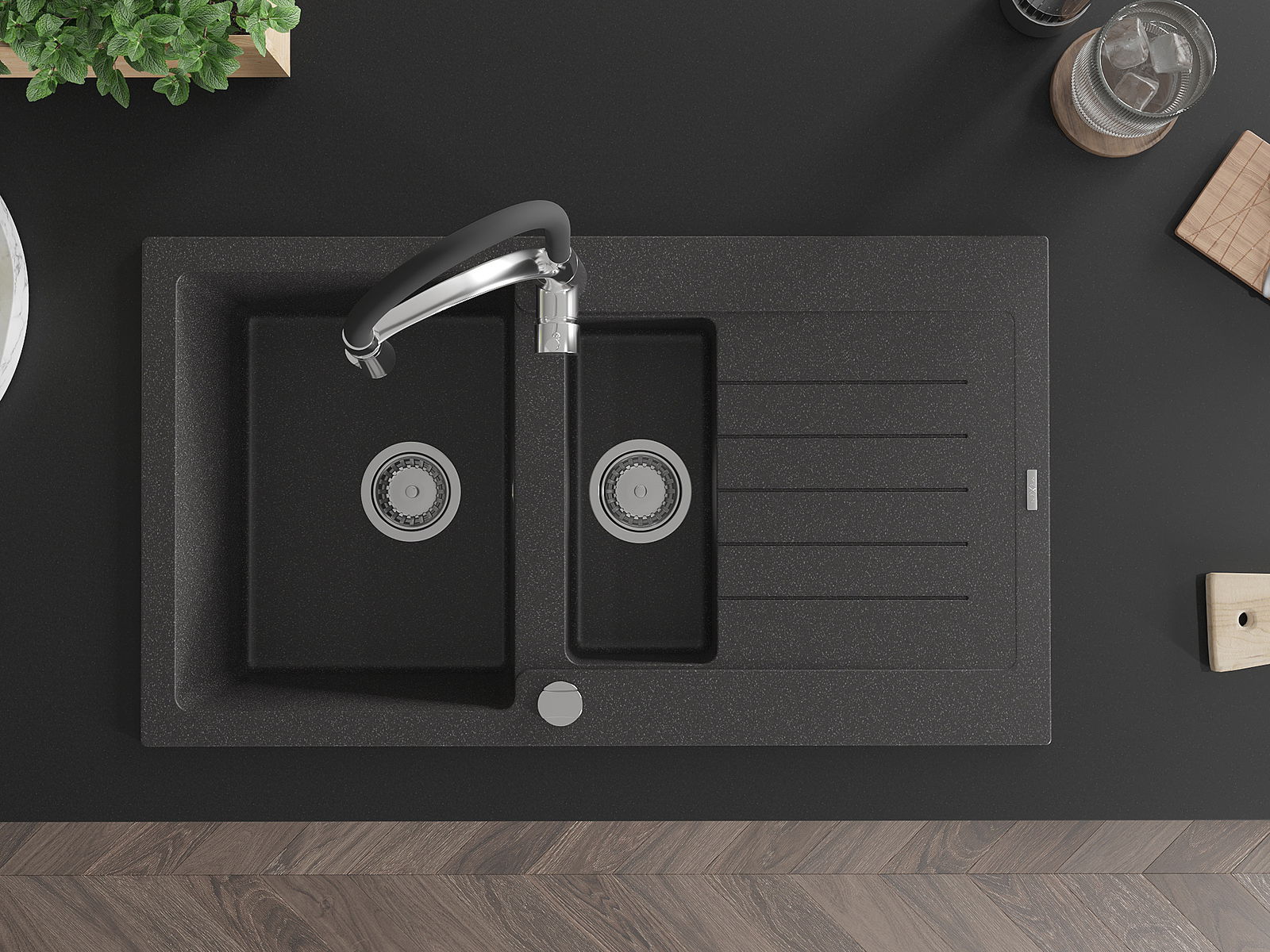 A mosogató kiváló minőségű gránitból készül. Ez egy elegáns és mindenekelőtt minden konyhához praktikus kiegészítés, stílusától függetlenül. A kiváló minőségű és a gránit tartósság biztosítja a sok éves használatát.