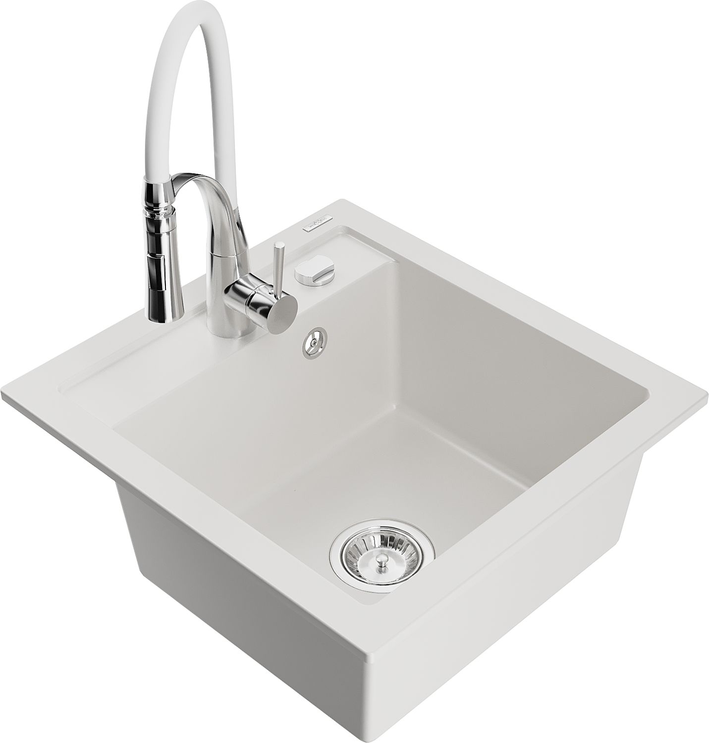 Mexen Vito gránit mosogatótálca 1-medencés konyhai csappal Aster, fehér - 6503-20-73450-02