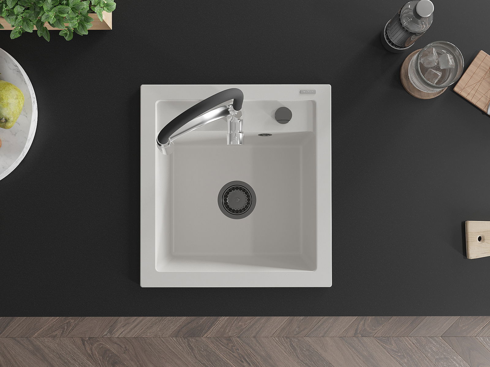 A mosogató kiváló minőségű gránitból készül. Ez egy elegáns és mindenekelőtt minden konyhához praktikus kiegészítés, stílusától függetlenül. A kiváló minőségű és a gránit tartósság biztosítja a sok éves használatát.