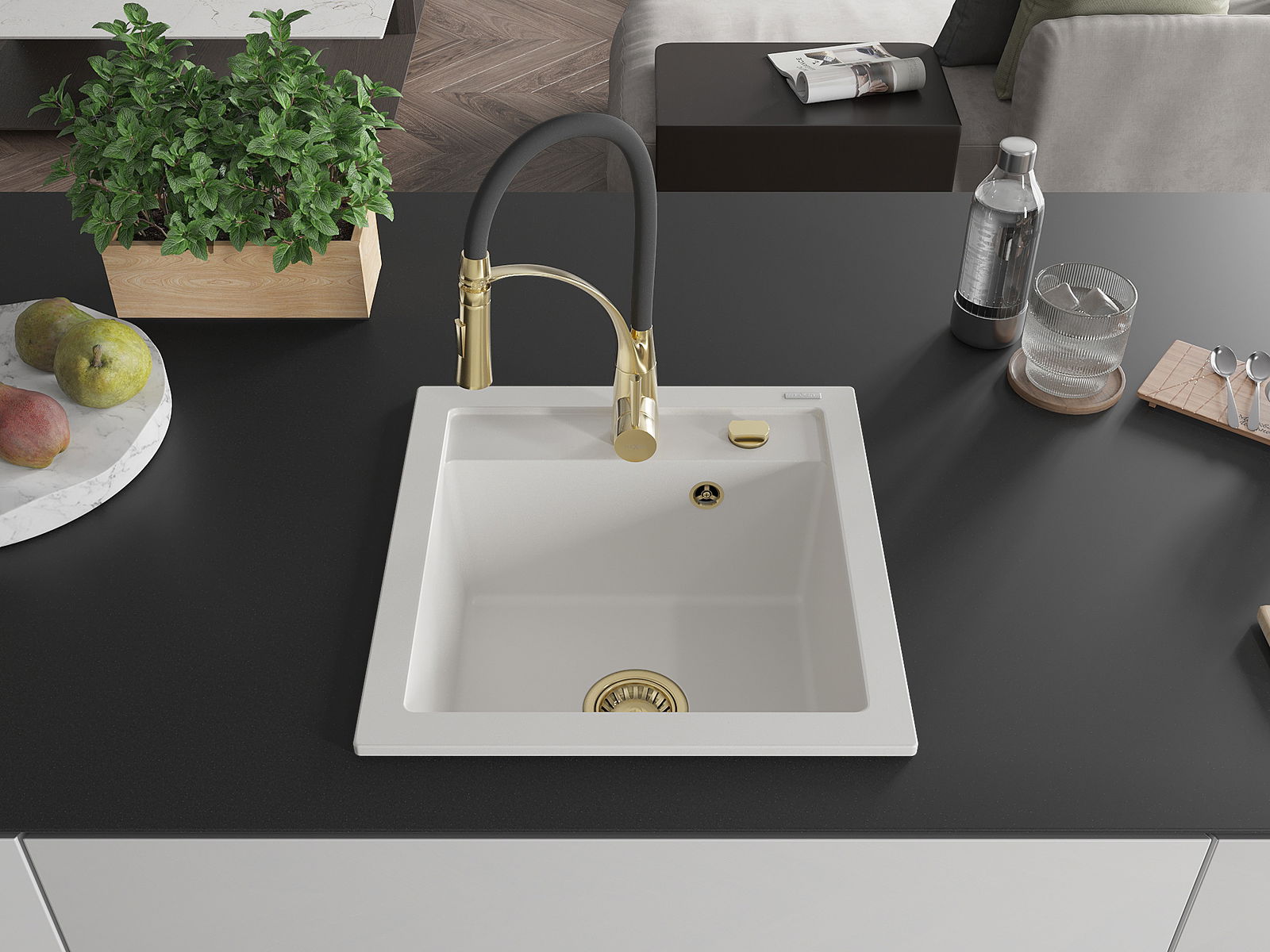 A mosogató kiváló minőségű gránitból készül. Ez egy elegáns és mindenekelőtt minden konyhához praktikus kiegészítés, stílusától függetlenül. A kiváló minőségű és a gránit tartósság biztosítja a sok éves használatát.