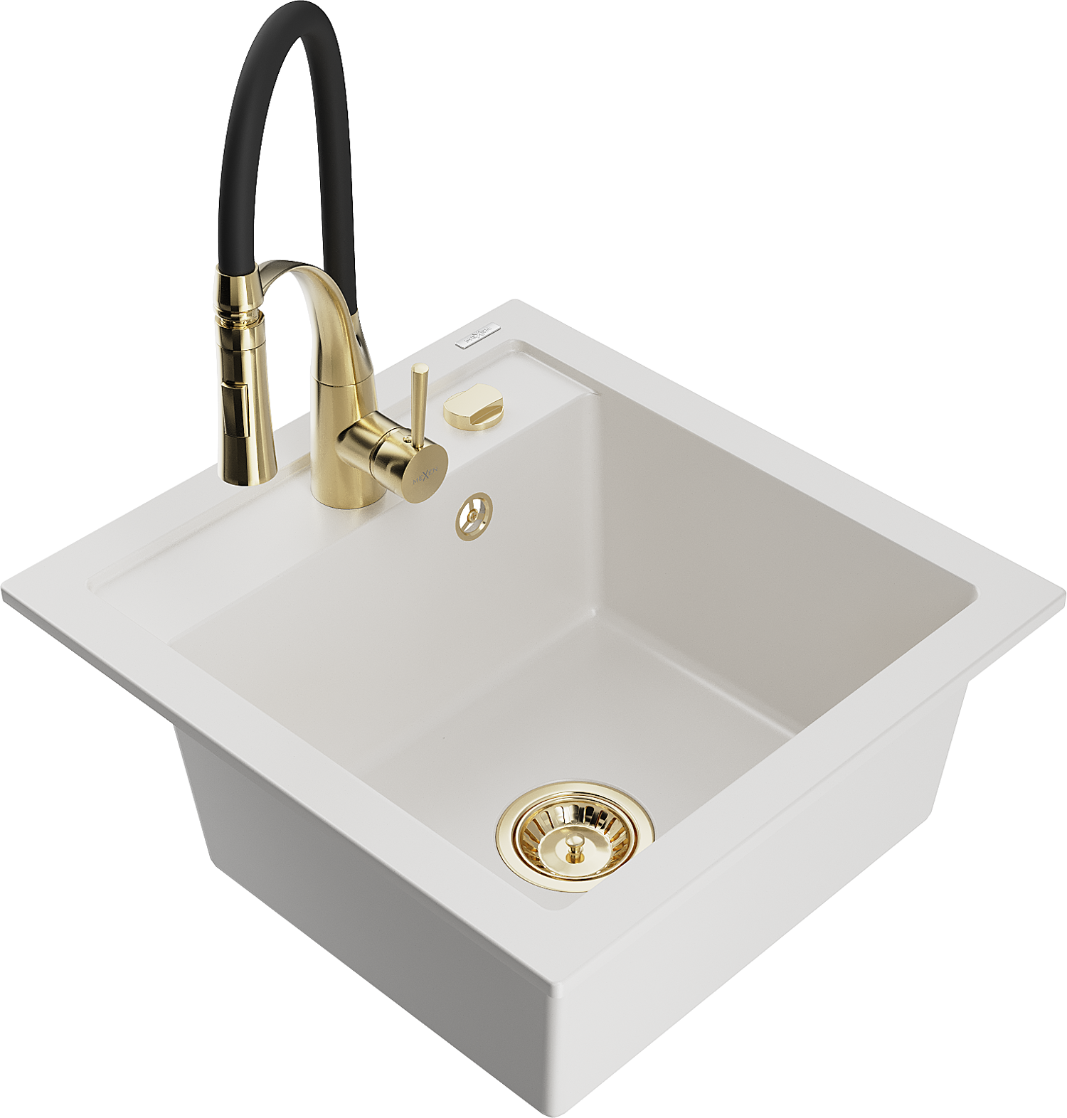 Mexen Vito egymedencés gránit mosogató Aster konyhai csappal, fehér - 6503-20-73450-57-G