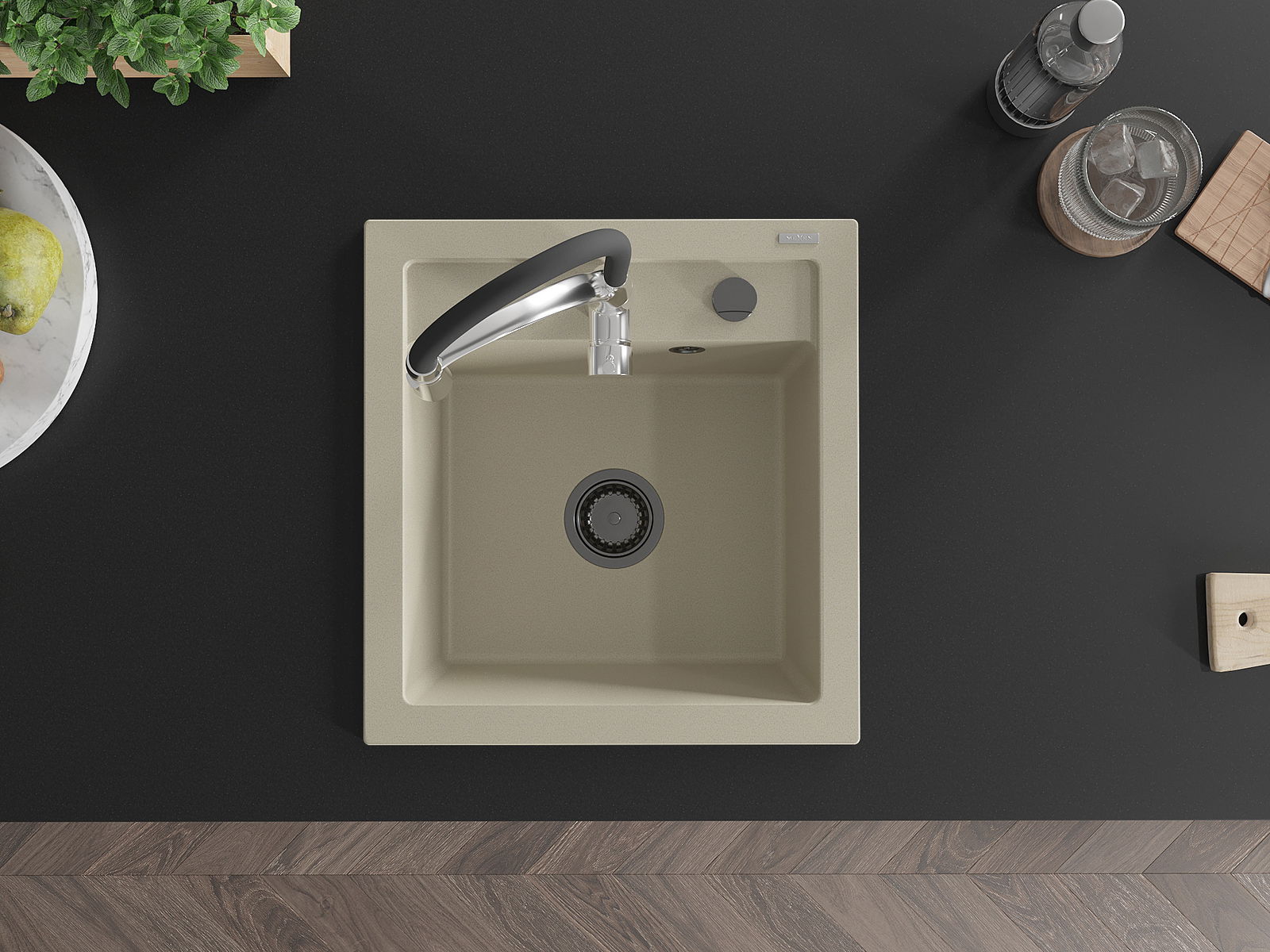 A mosogató kiváló minőségű gránitból készül. Ez egy elegáns és mindenekelőtt minden konyhához praktikus kiegészítés, stílusától függetlenül. A kiváló minőségű és a gránit tartósság biztosítja a sok éves használatát.