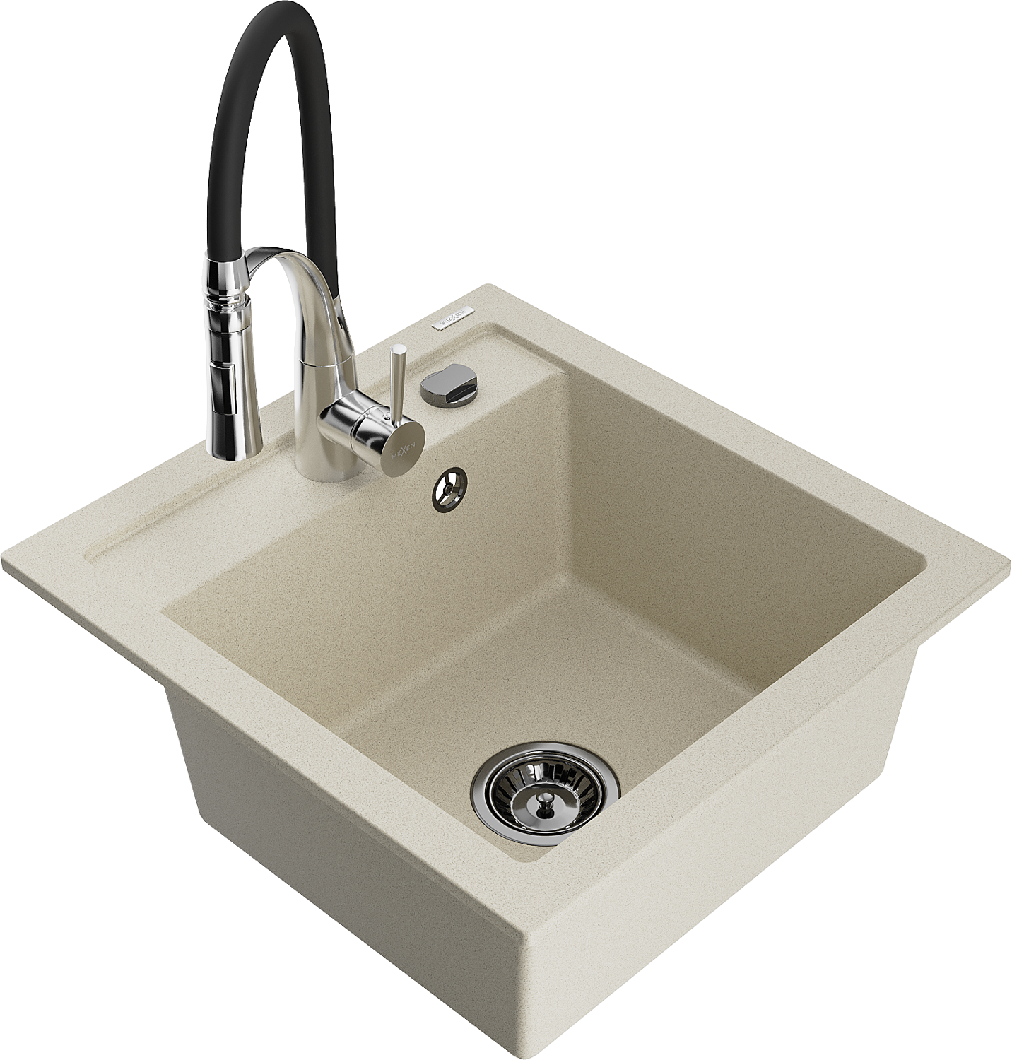 Mexen Vito egykamrás gránit mosogató Aster konyhai csapteleppel, bézs - 6503-69-73450-07-B
