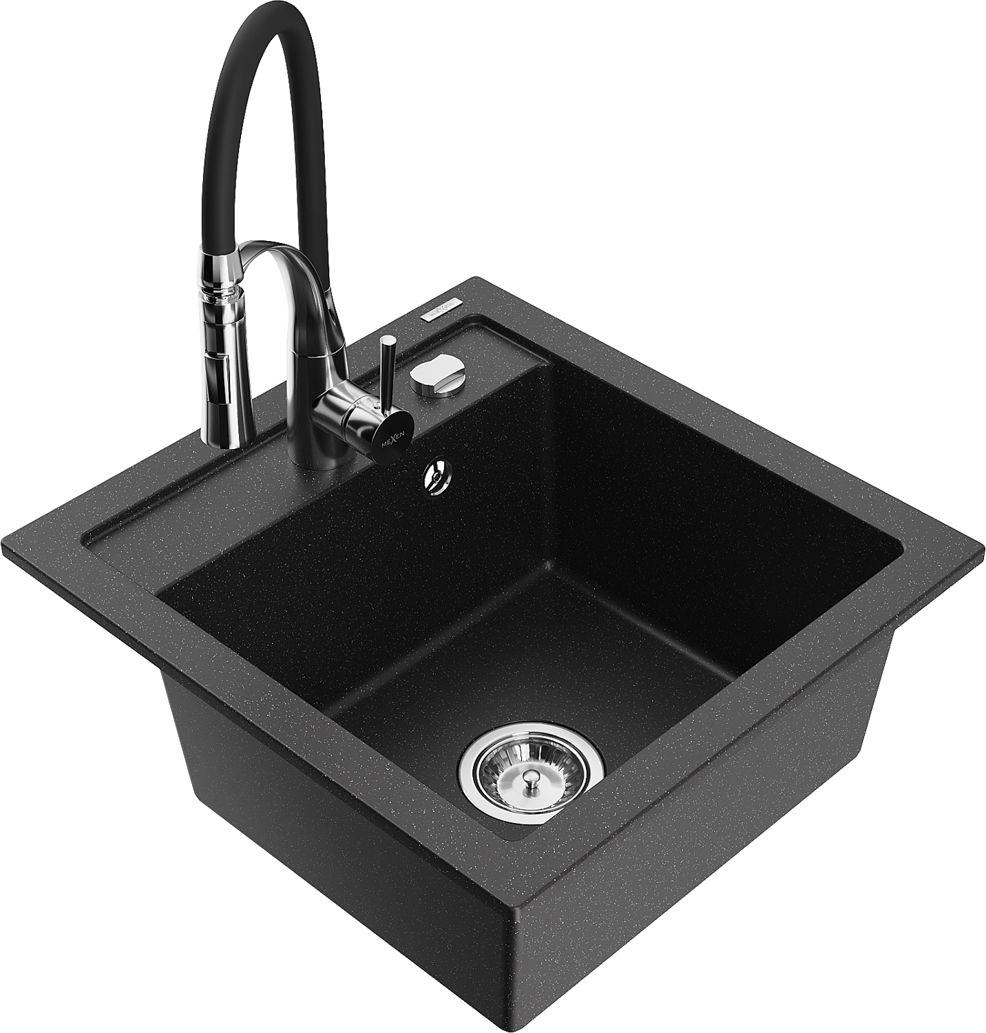 Mexen Vito 1-medencés gránit mosogató Aster konyhai csapteleppel, fekete/ezüst metál- 6503-73-73450-07
