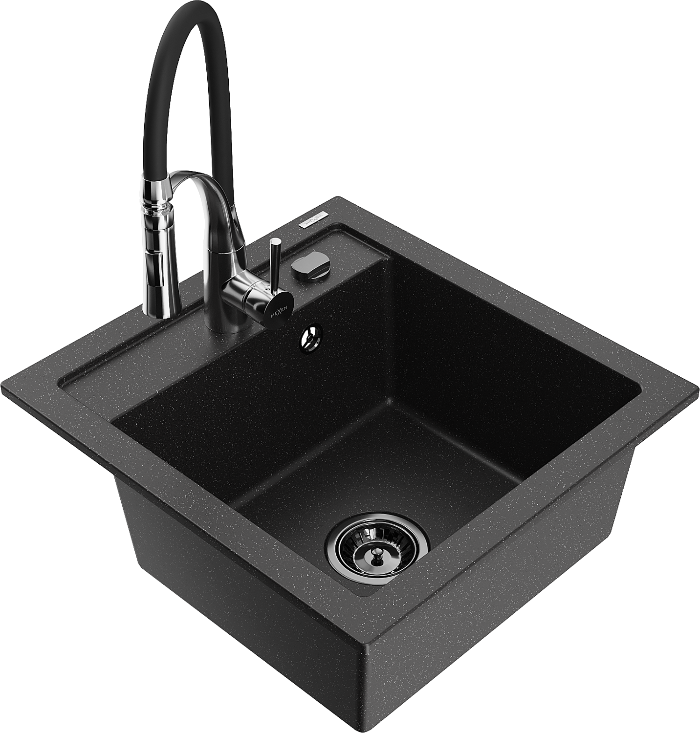 Mexen Vito 1-medencés gránit mosogató Aster konyhai csapteleppel, fekete/ezüst metál - 6503-73-73450-07-B