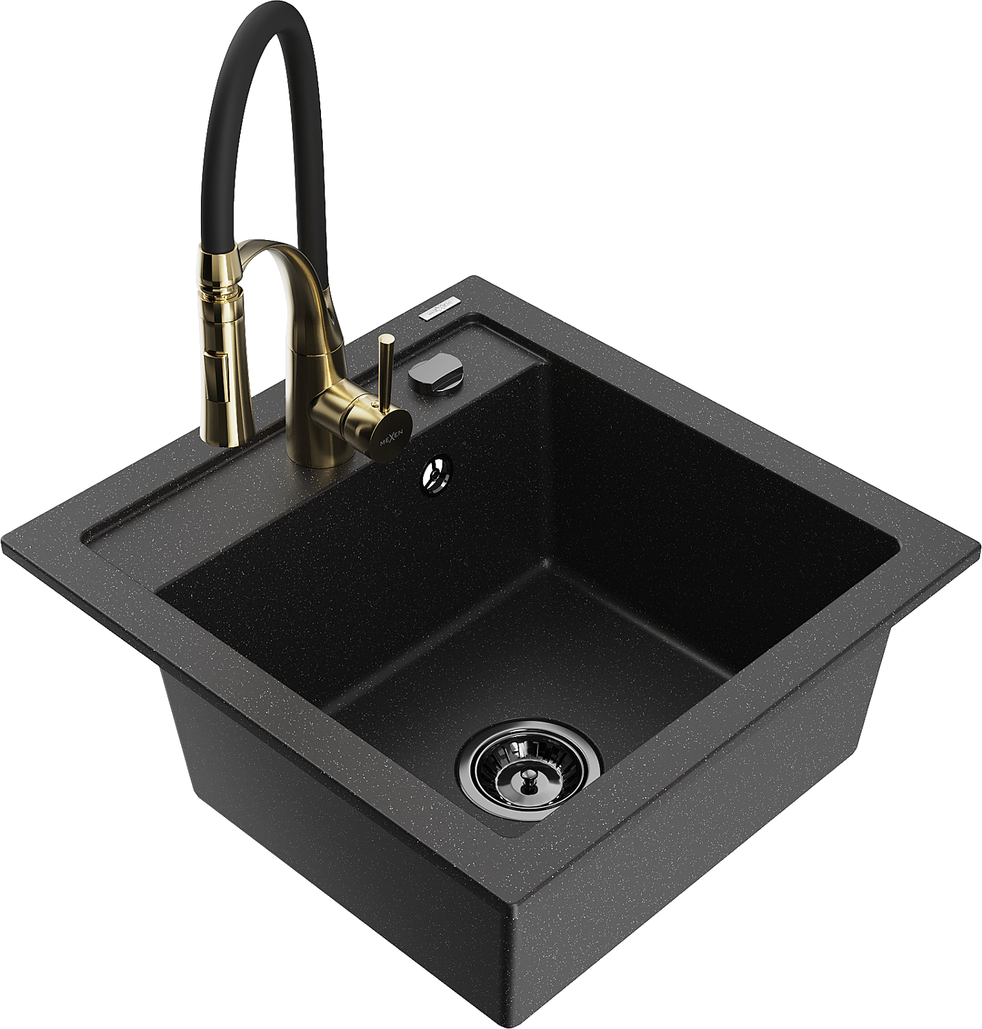 Mexen Vito egymedencés gránit mosogató Aster konyhai csapteleppel, fekete/ezüst metál- 6503-73-73450-57-B