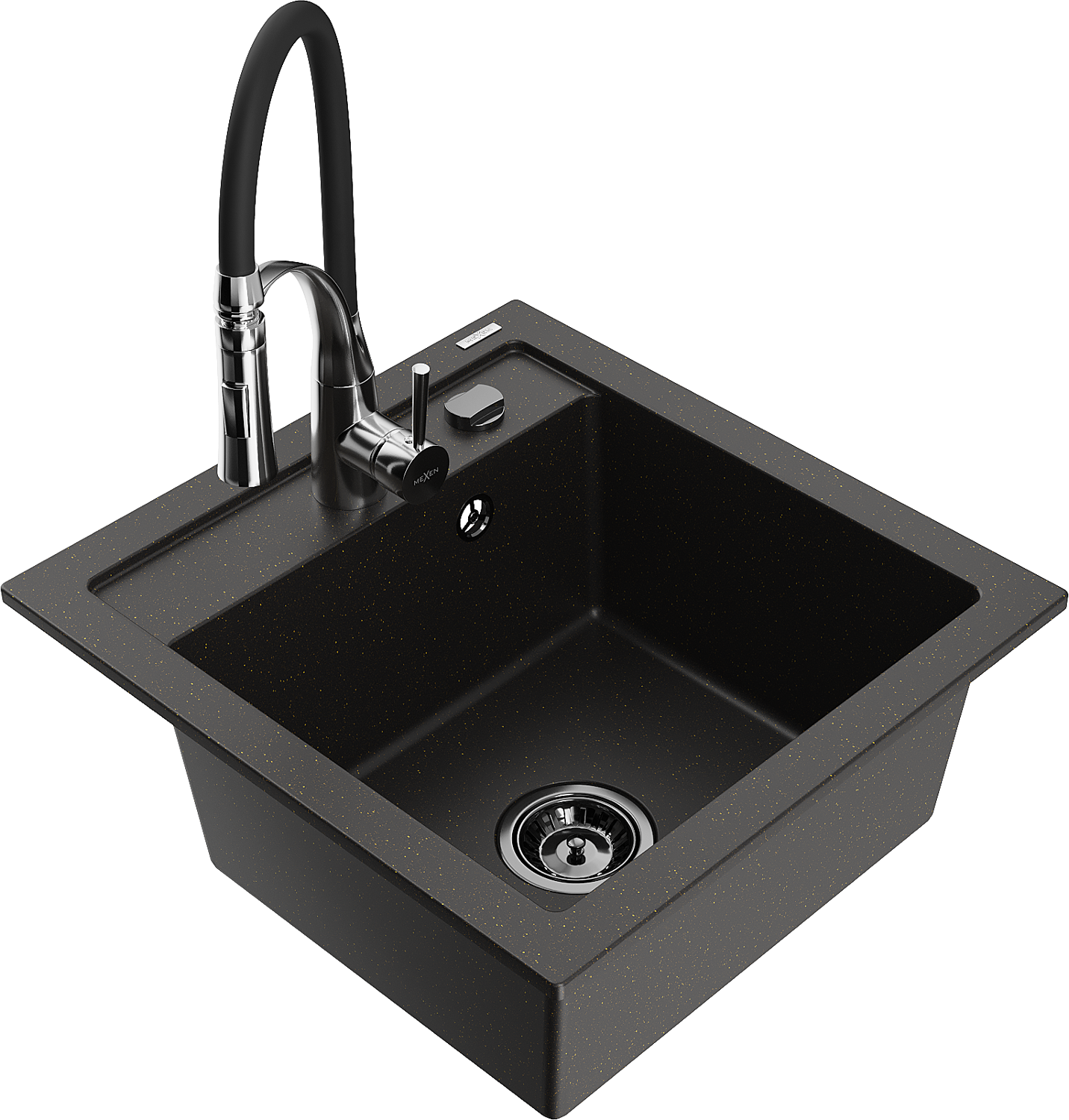 Mexen Vito 1 rekeszes gránit mosogató Aster konyhai csapteleppel, fekete/arany metál- 6503-75-73450-07-B