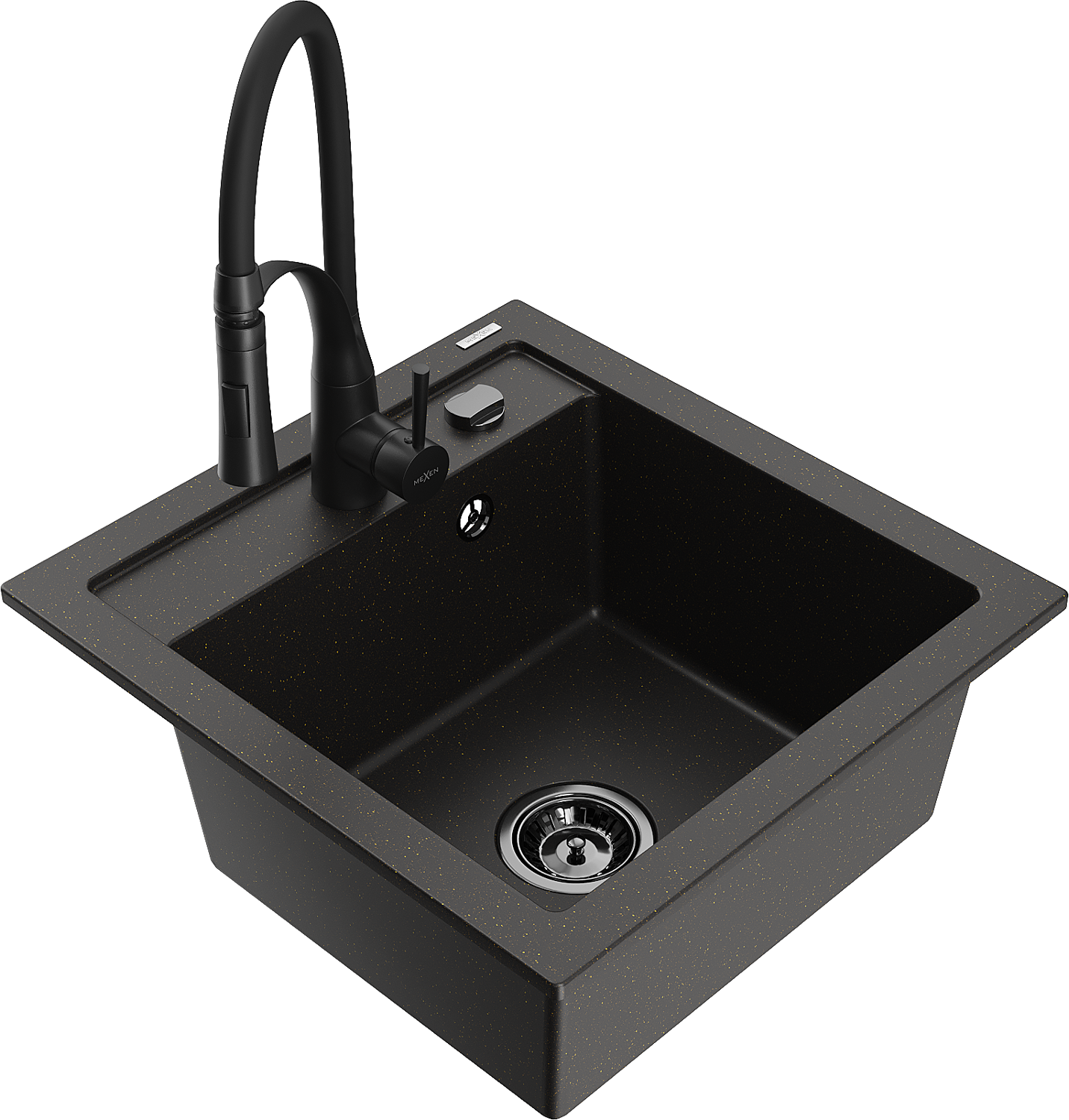 Mexen Vito 1 rekeszes gránit mosogató Aster konyhai csapteleppel, fekete/arany metál- 6503-75-73450-70-B