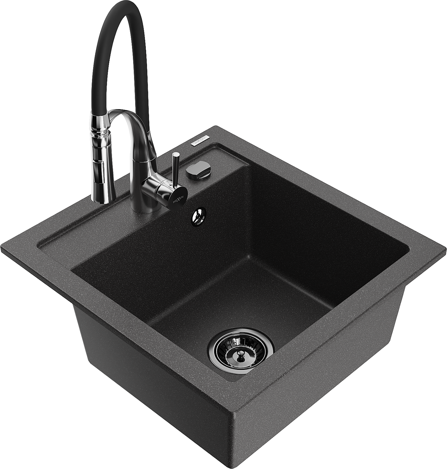 Mexen Vito 1-medencés gránit mosogató Aster konyhai csapteleppel, fekete pettyes - 6503-76-73450-07-B