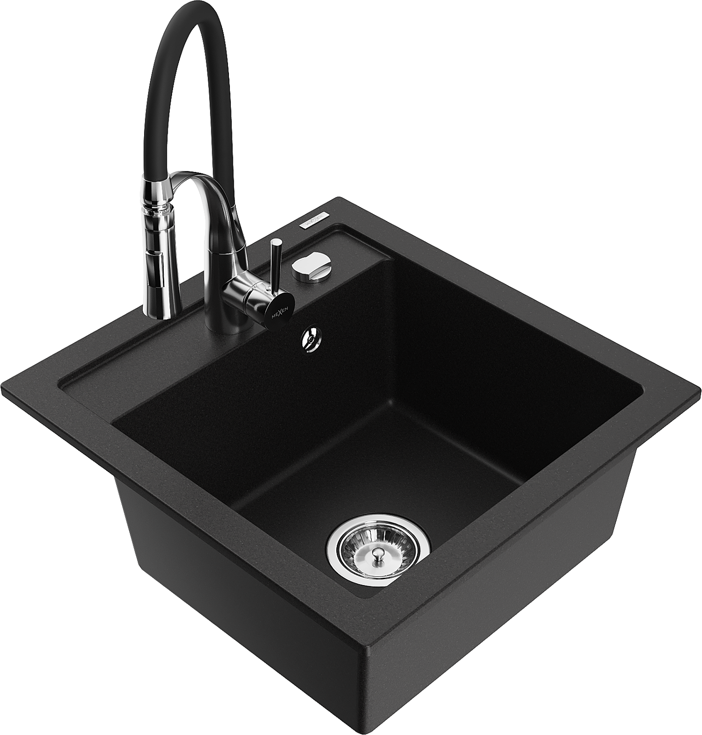 Mexen Vito 1 rekeszes gránit mosogató Aster konyhai csappal, fekete - 6503-77-73450-07