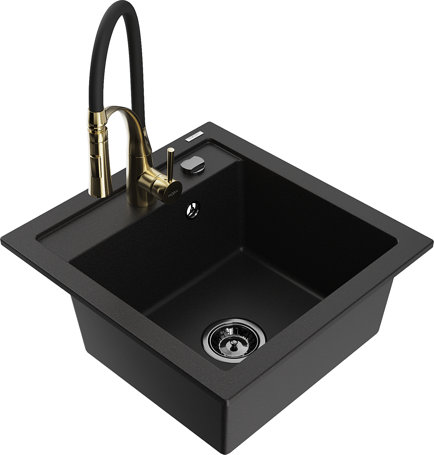 Mexen Vito 1 rekeszes gránit mosogató Aster konyhai csapteleppel, fekete - 6503-77-73450-57-B