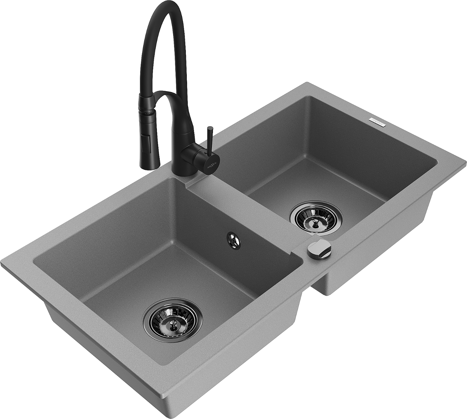 Mexen Mario 2 rekeszes gránit mosogató Aster konyhai csapteleppel, szürke - 6504-71-73450-70-B