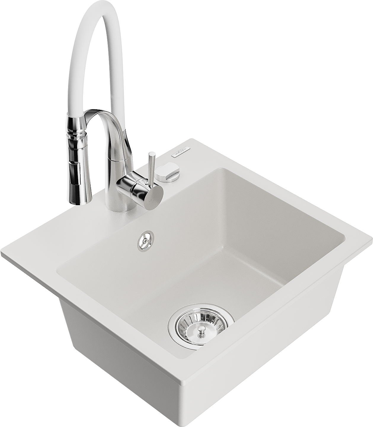 Mexen Milo 1-kamrás gránit mosogató Aster konyhai csappal, fehér - 6505-20-73450-02