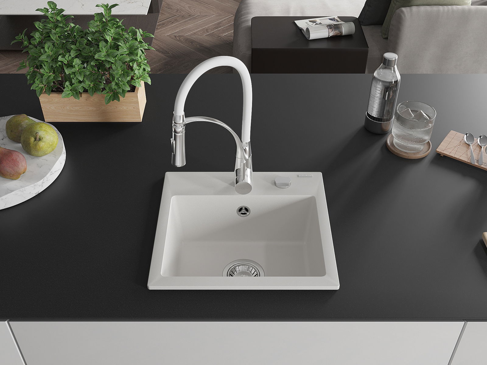 A mosogató magas minőségű gránitból készült. Elegáns, de mindenekelőtt praktikus kiegészítője minden konyhának, függetlenül annak stílusától. A gránit magas minősége és tartóssága hosszú távú használatot biztosít.