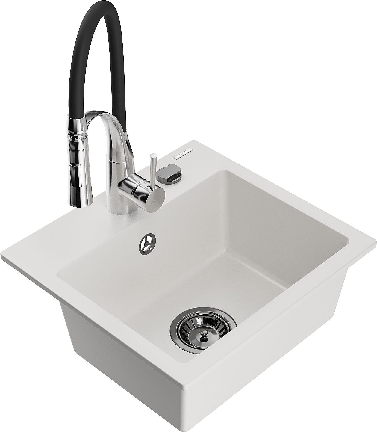A mosogató magas minőségű gránitból készült. Elegáns, de mindenekelőtt praktikus kiegészítője minden konyhának, függetlenül annak stílusától. A gránit magas minősége és tartóssága hosszú távú használatot biztosít.