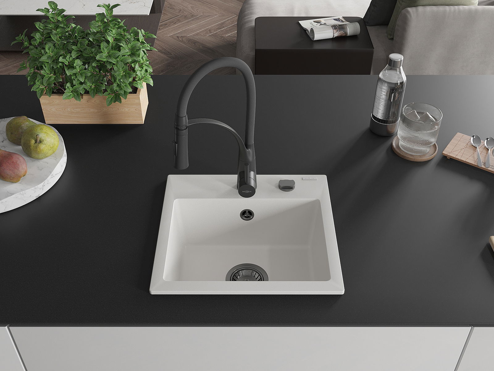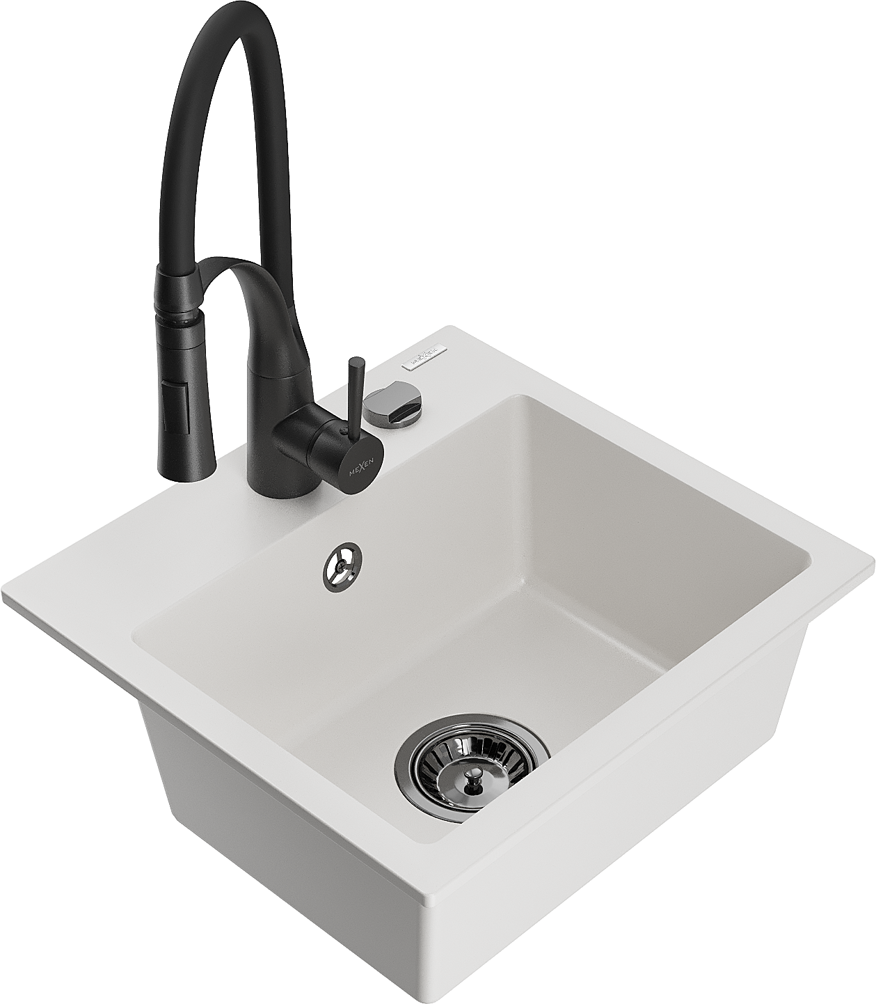 Mexen Milo 1-medencés gránit mosogató Aster konyhai csapteleppel, fehér - 6505-20-73450-70-B