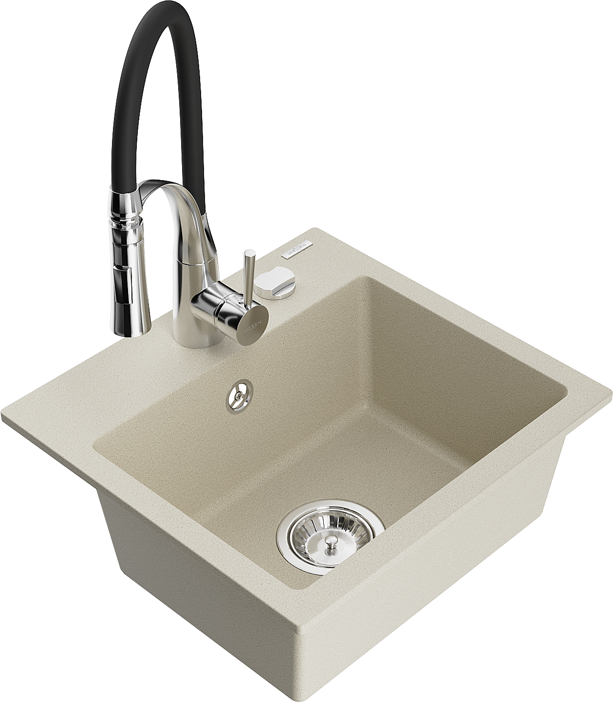 Mexen Milo egymedencés gránit mosogatótálca Aster konyhai csapteleppel, bézs - 6505-69-73450-07