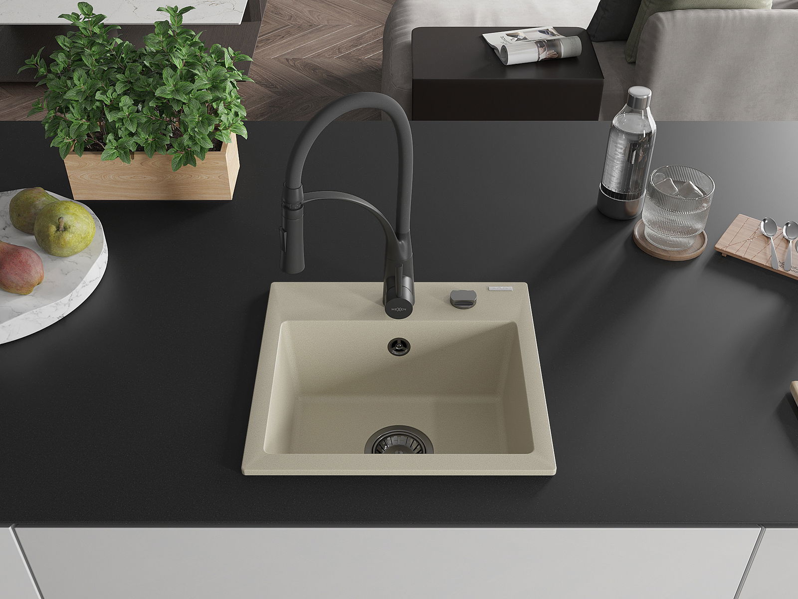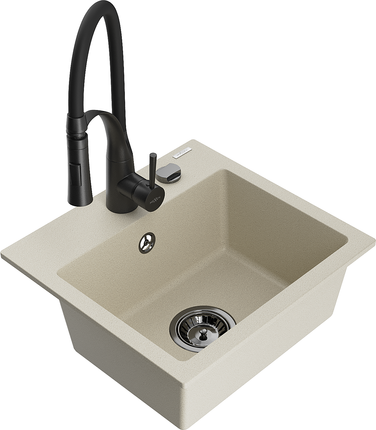 Mexen Milo egymedencés gránit mosogató konyhai csapteleppel, Aster, bézs - 6505-69-73450-70-B
